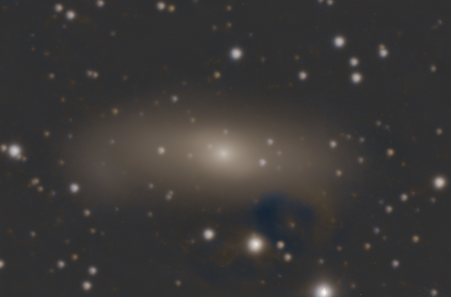 There was one dust spot that did not calibrate out completely; I was able to reduce how clearly it showed up in the final image by repeatedly fitting a model to the background and then subtracting it, but it still isn't perfect.