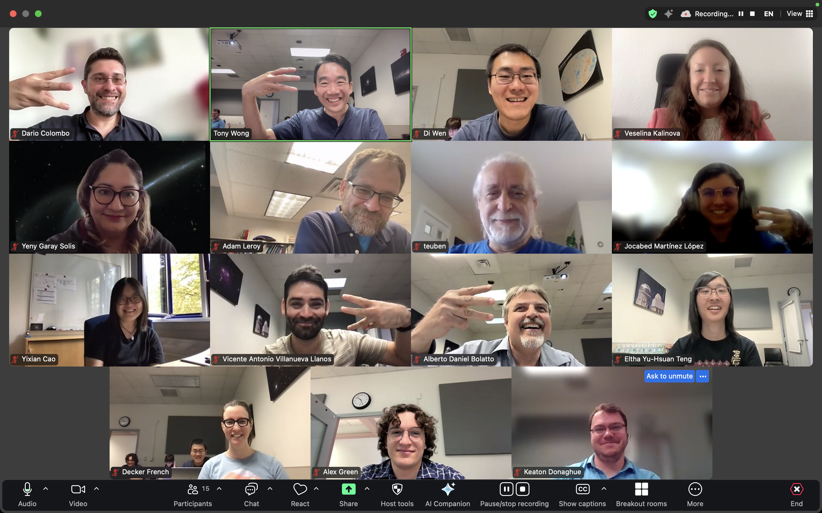 The first EDGE-CALIFA meeting took place in Maryland on April 2015. Some of the original team members can be seen here. Left to right: Karin Sandstrom, Stuart Vogel, Rodrigo Herrera-Camus, Glenn van de Ven, Erik Rosolowsky, Tony Wong, Adam Leroy, Dyas Utomo, Peter Teuben, Leo Blitz, Alberto Bolatto, Eve Ostriker, Helmut Dannerbauer, Yixian Cao.