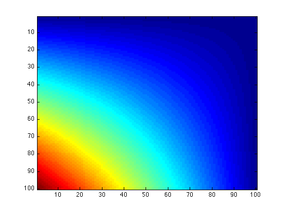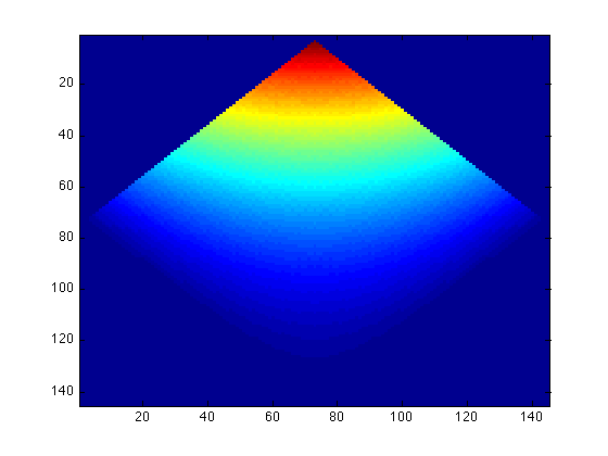 This means we want to rotate data array A by 45 degrees and save it in array RotateA. Note that the rotation is in a counterclockwise direction around the array's center point. You can specify a negative value for angle to rotate the image clockwise.