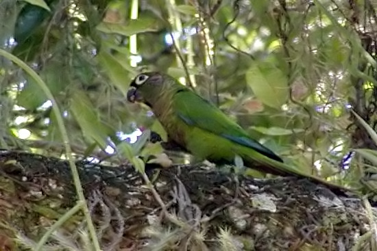 Reddish-bellied Parakeet (aka Maroon-bellied Parakeet). Seen at the botanical gardens in Rio.