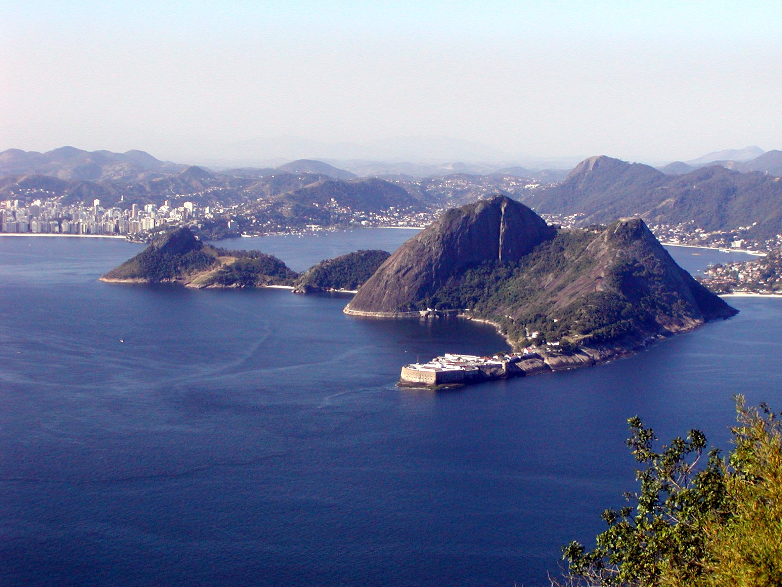 Looking back at Morro da Urca from cablecar stop number 2 on Sugarloaf.