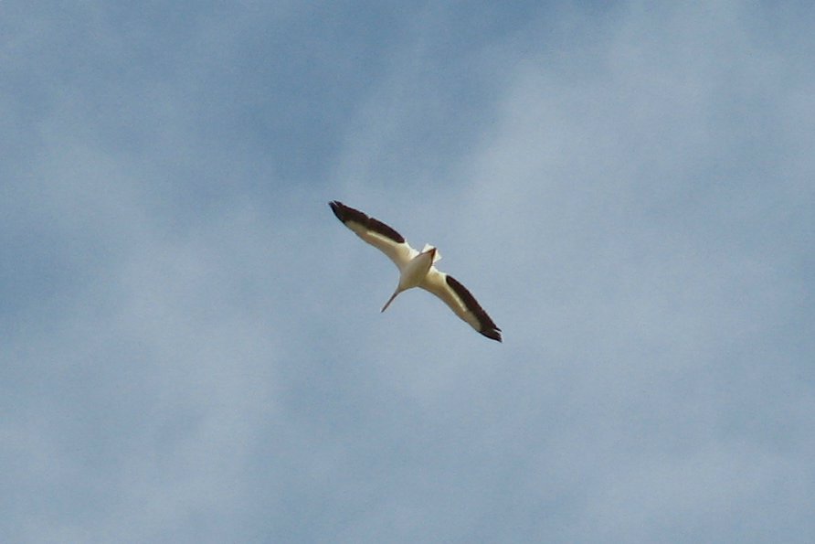 An American White Pelican soaring near Barr Lake, Aug 4/06.