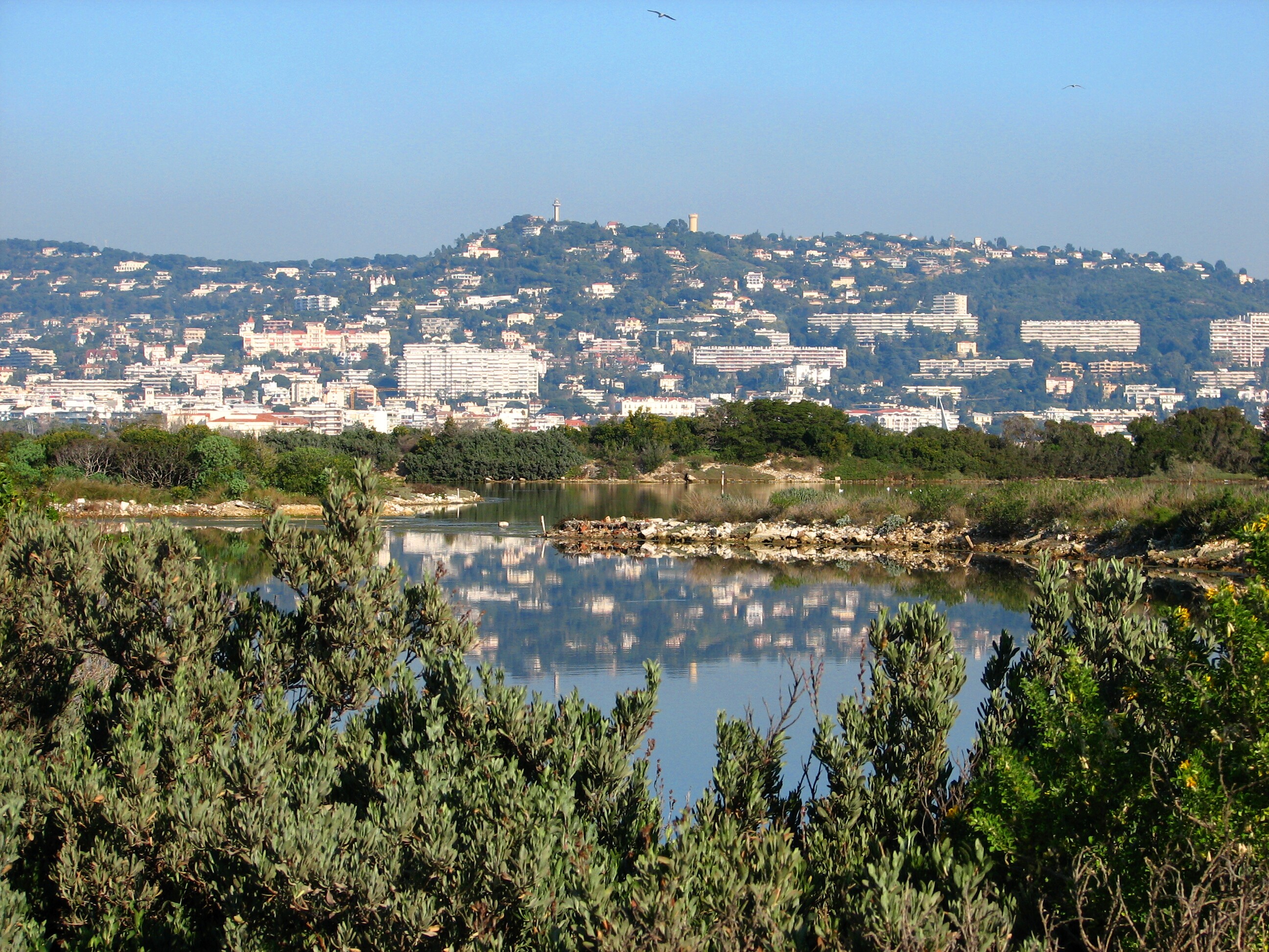 The lake and mainland.