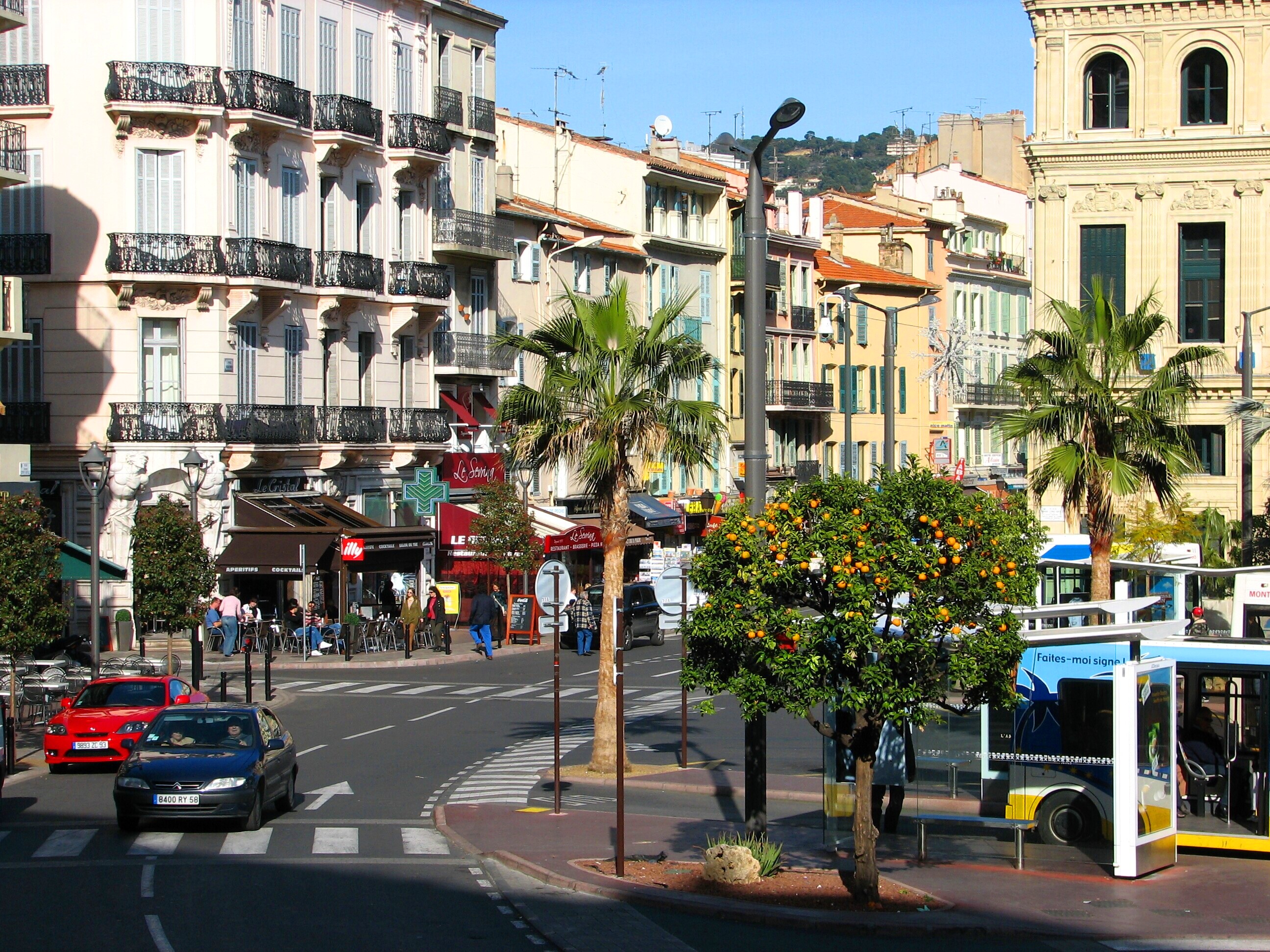 Downtown Cannes, with orange tree.