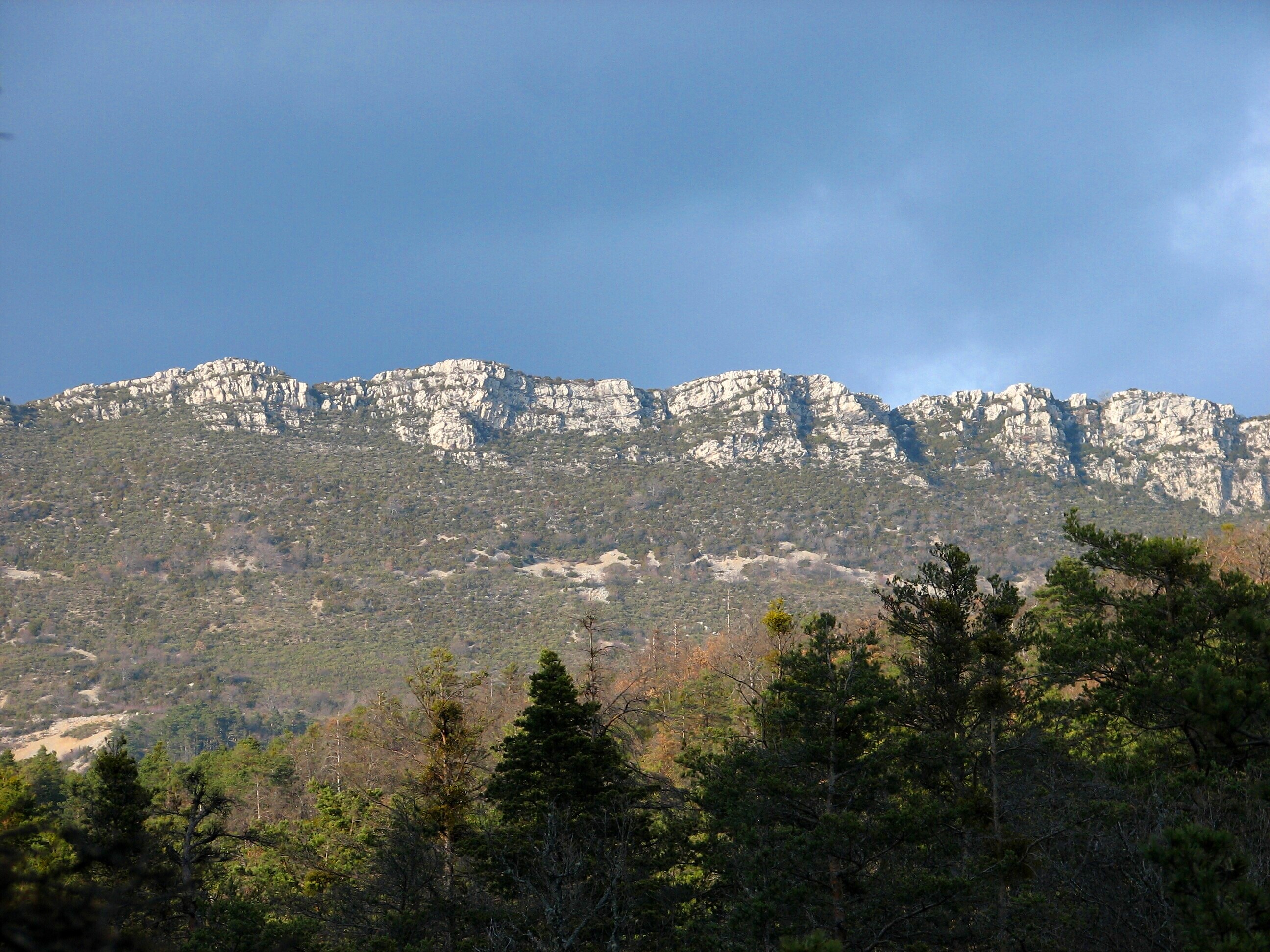 Nice sunlit cliffs on the hike back.