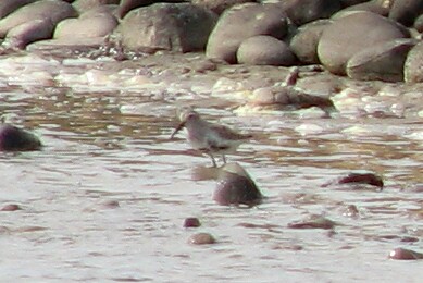 Dunlin. Plage de Piémanson, Camargue, 3/28/07. Another tricky shorebird ID, this bird is distinguished by the dark feathers on the undersides indicating a transition to summer plumage.