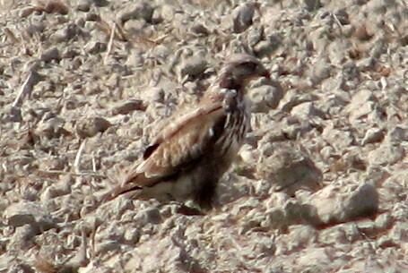 Eagle,Bonellis01.jpg Bonelli's Eagle. Camargue, 3/28/07. I'm basing the ID of this remarkable lifer on the head and beak shape, the streaking on the front, and the white patch on the nape. It was just sitting in a stone-covered field (coussous) by the road. Unfortunately I was too slow to get a picture when it took flight. My field guide indicates there are only about 600 pairs in the region! |