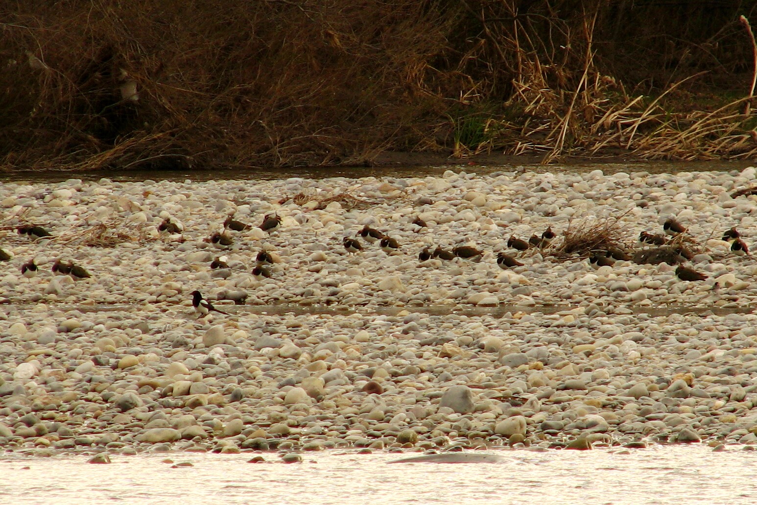 Northern Lapwings and a Common Magpie. Var River mouth, St-Laurent-du-Var, 1/31/07.