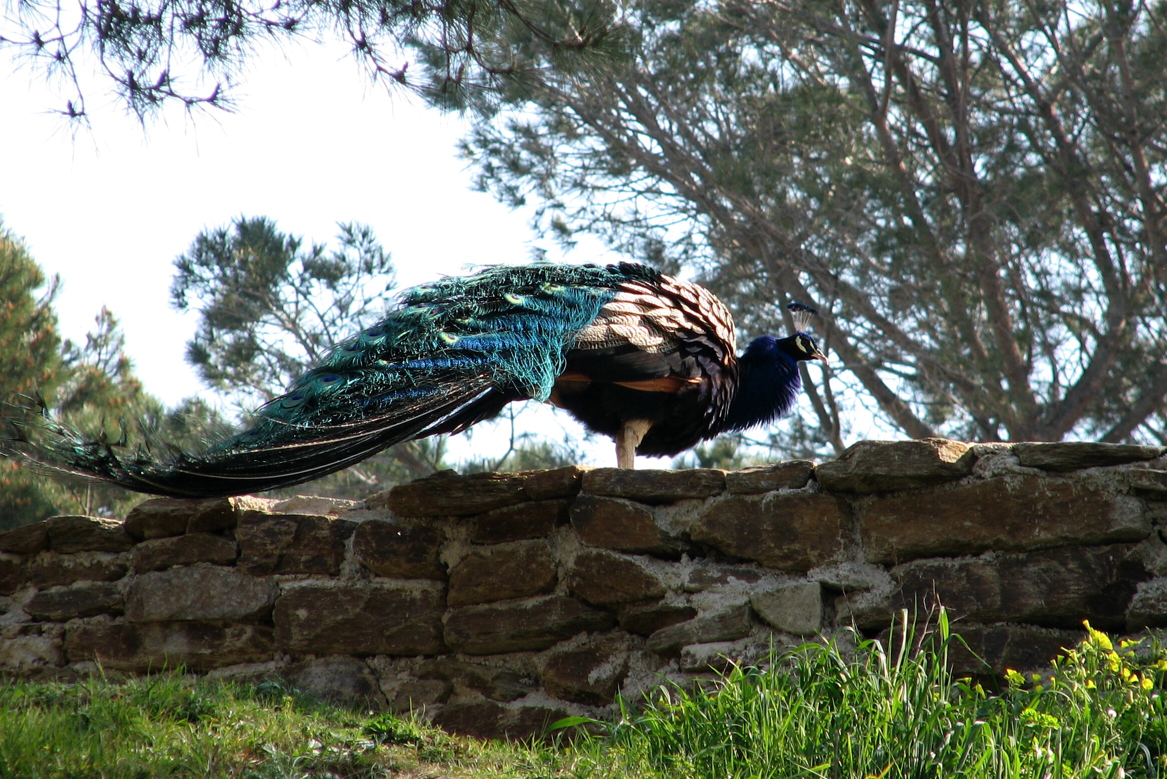 Common Peafowl (male). St-Tropez, 3/17/07. This domestic bird was calling loudly for a while, but unfortunately did not fan its impressive tail feathers.