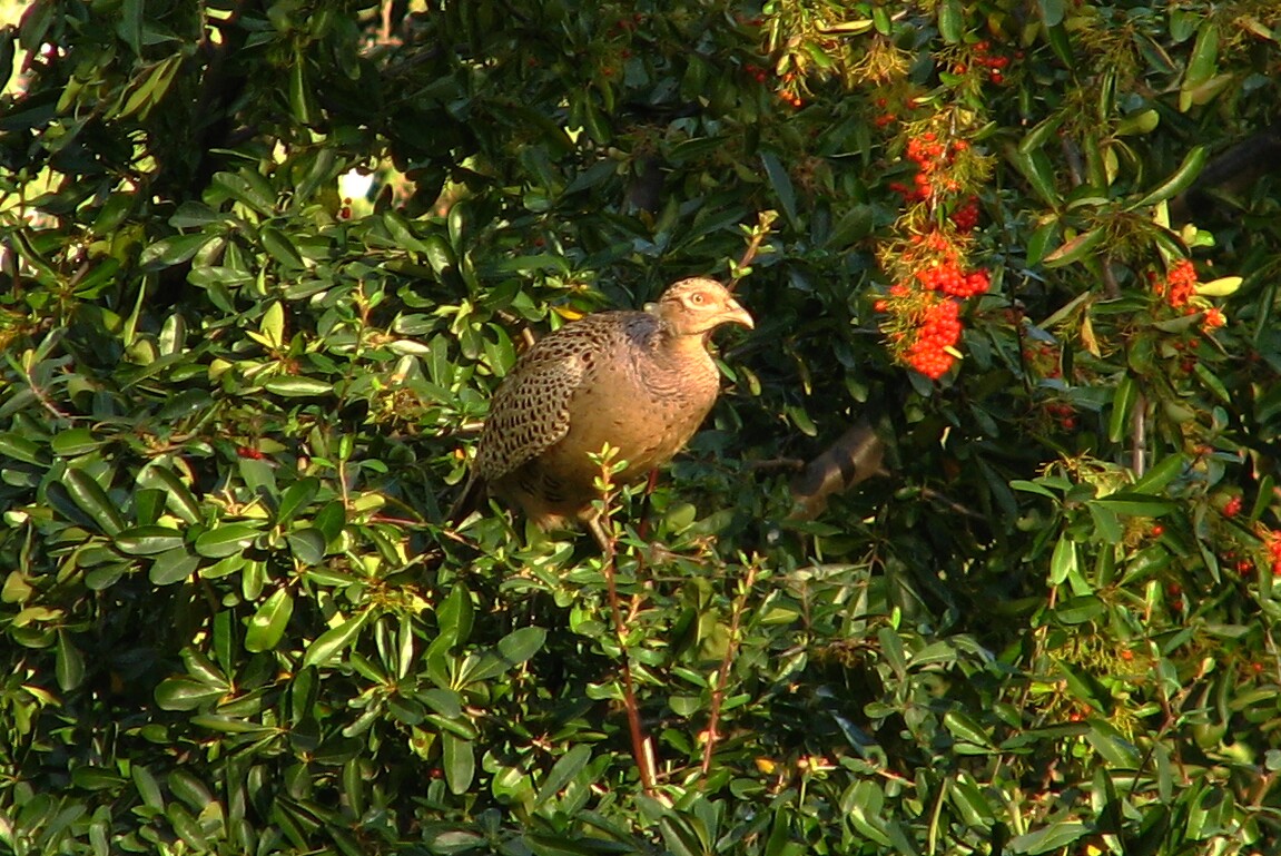 Ring-necked Pheasant (female). Nice Observatory, 1/19/07. Is it just me or does she look worried?