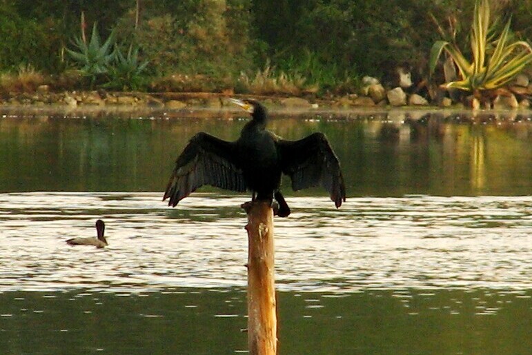 Great Cormorant. Ste-Marguerite Island, 1/20/07. The classic stance (cormorants must air dry their wings).