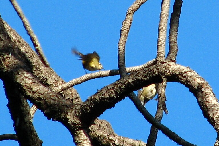 Firecrest. Nice Observatory, 1/29/07. You can barely make out the eyeline on this individual. The obscured bird is a Goldcrest.