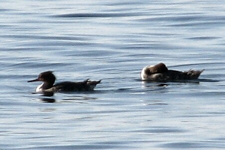 Red-breasted Mergansers (male and female). Ste-Marguerite Island, 2/1/07. An unexpected (but not improbable) find.