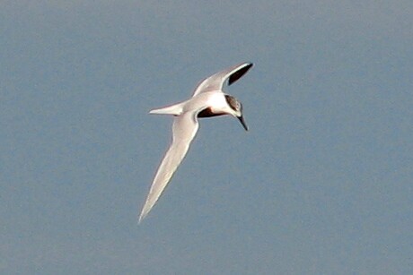 Sandwich Tern. Ste-Marguerite Island, 2/1/07. This species habitually flies with its head pointed down, as it scans for fish. The dives into the water are spectacular!