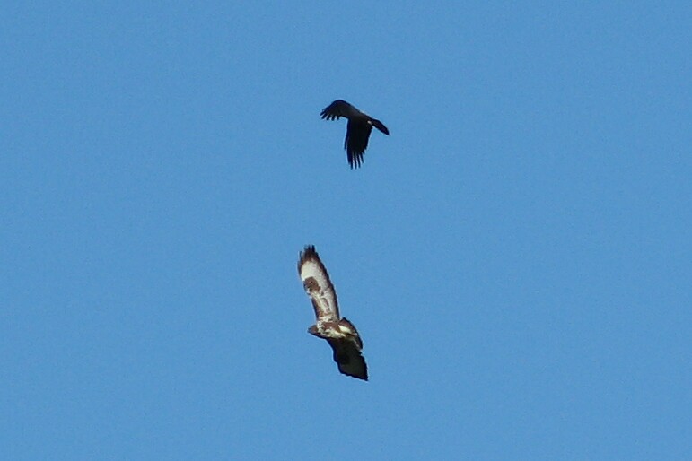 Hooded Crows attacking a Common Buzzard. Near Ajaccio, Corsica, 2/5/07. Watch the movie!