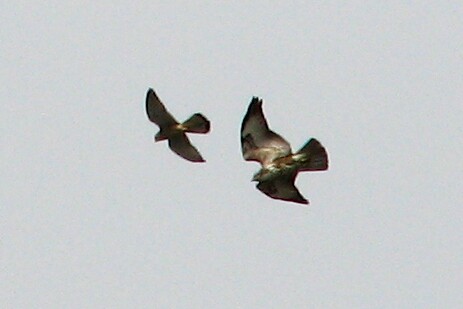Eurasian Kestrel and Common Buzzard. Bonifacio, Corsica, 2/6/07. This kestrel was attacking this buzzard in mid flight.