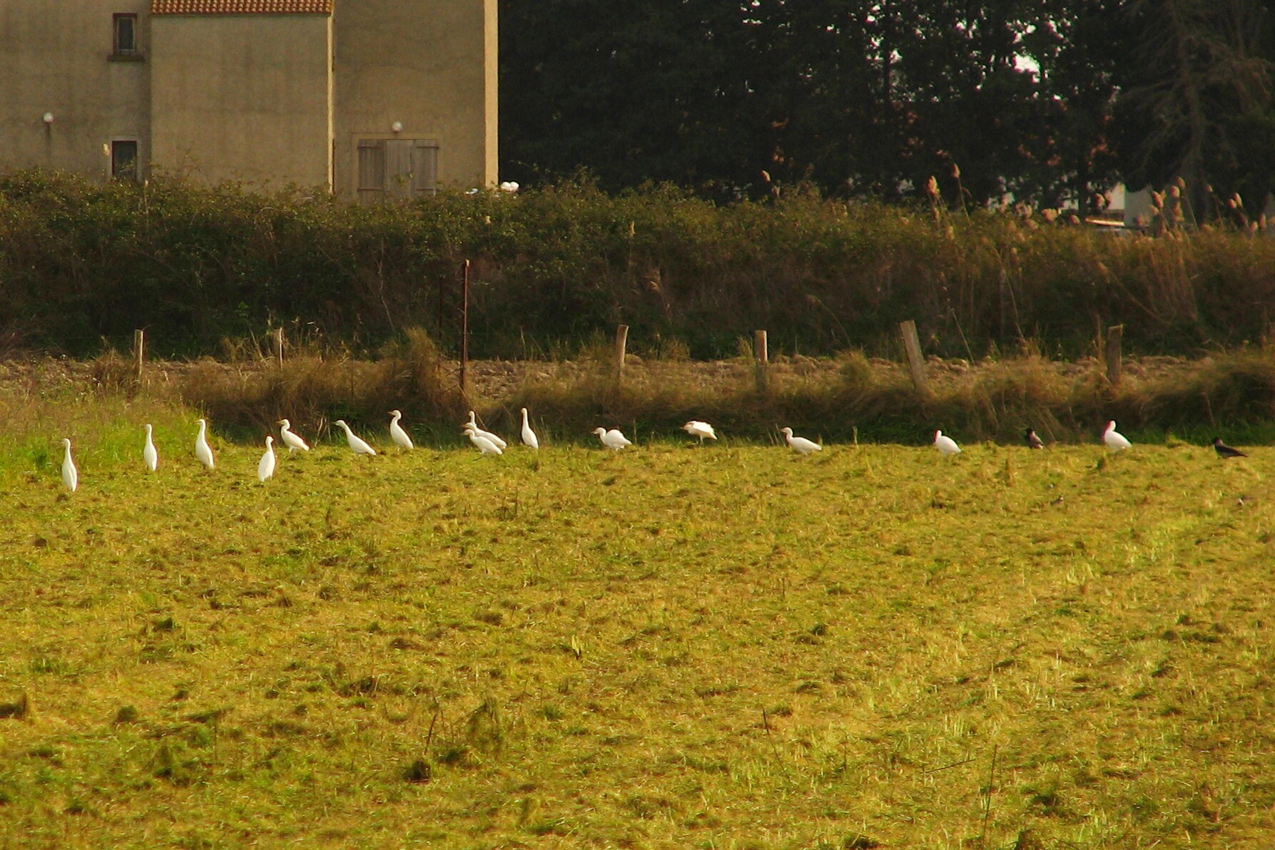Cattle Egrets (also 2 Hooded Crows). Near Bastia airport, Corsica, 2/8/07.