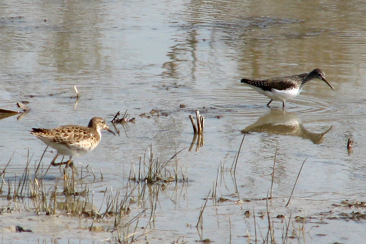 Ruff and Green Sandpiper. La Capelière, Camargue, 3/28/07.