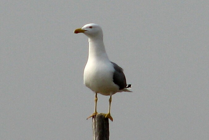Yellow-legged Gull. La Palissade, Camargue, 3/28/07. I just liked the way it was standing on the post in the water.
