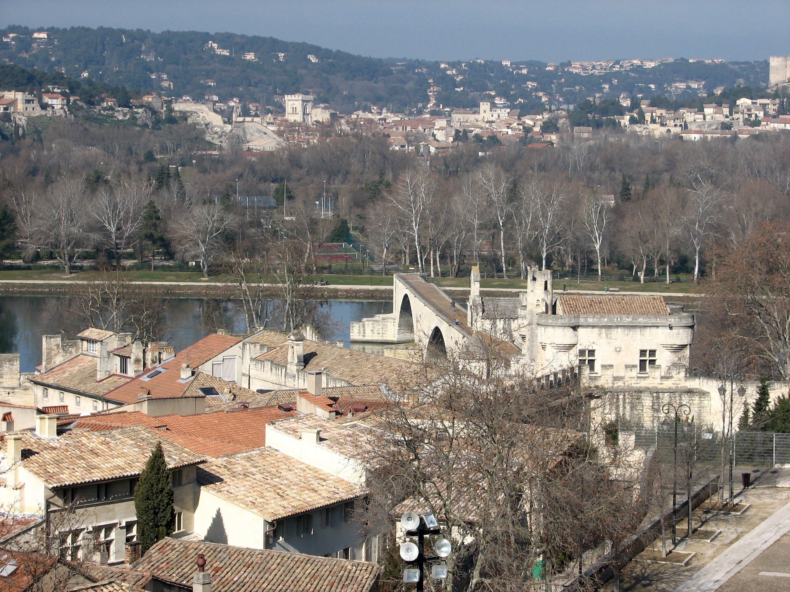 A view of the Avignon Bridge. You can see that the bridge no longer spans the Rhone. Engineers gave up on repairing it long ago.