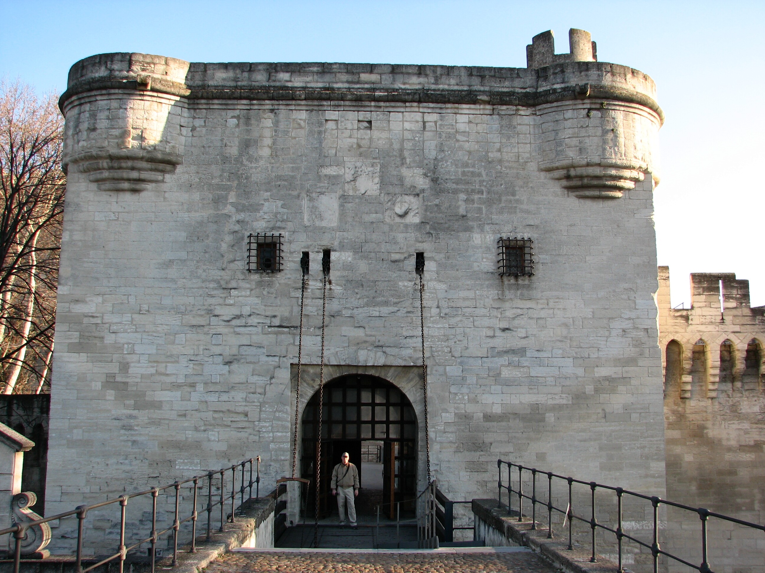 The east end of the bridge, at the city wall, has 2 drawbridges side by side, one small (for pedestrians), one larger (for vehicles).