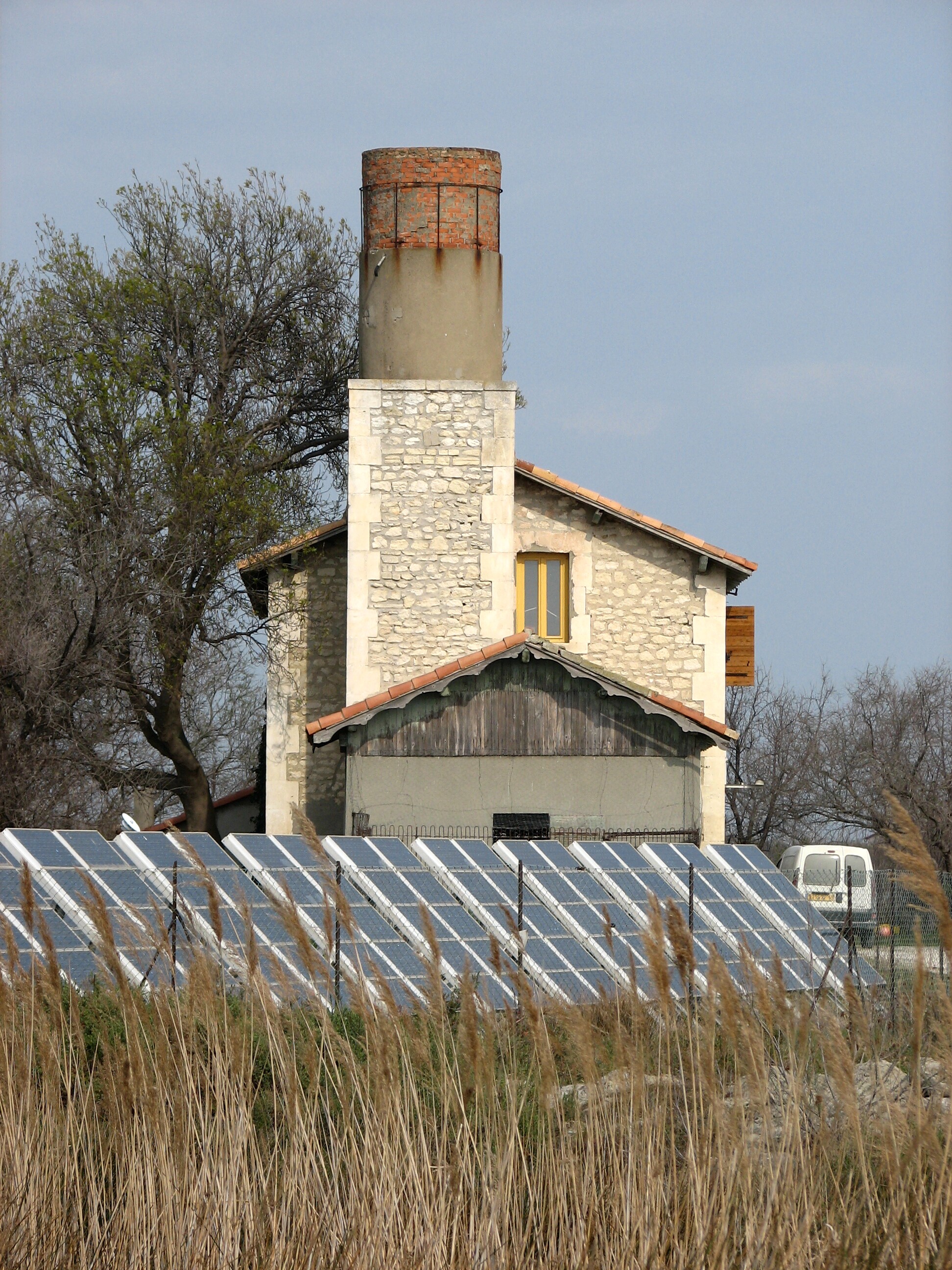 The welcome center at la Palissade reserve. Notice the large array of solar cells in front.