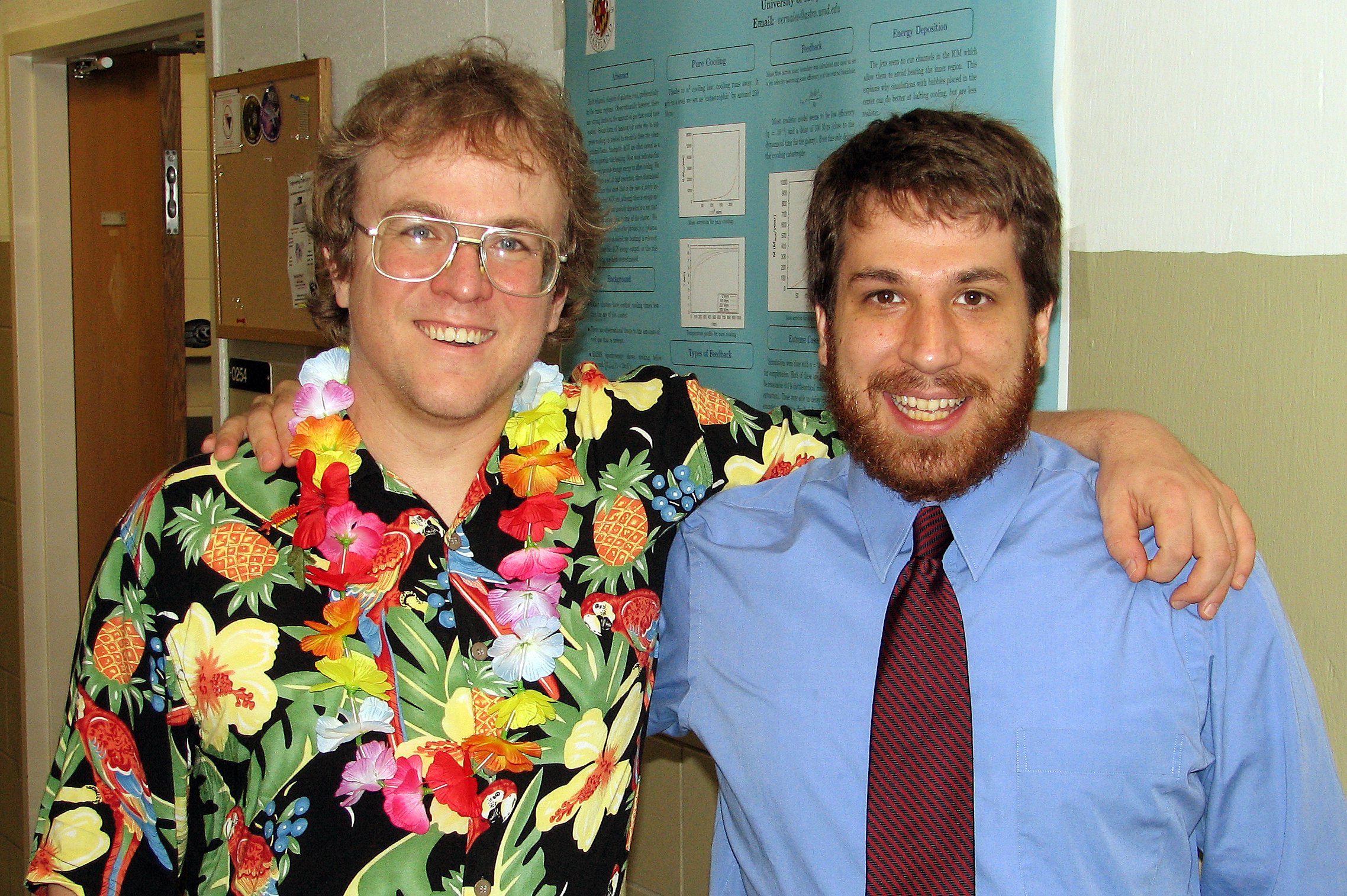 Loud Hawaiian Shirt Day clashes with Uncasual Friday: Doug & Kayhan.