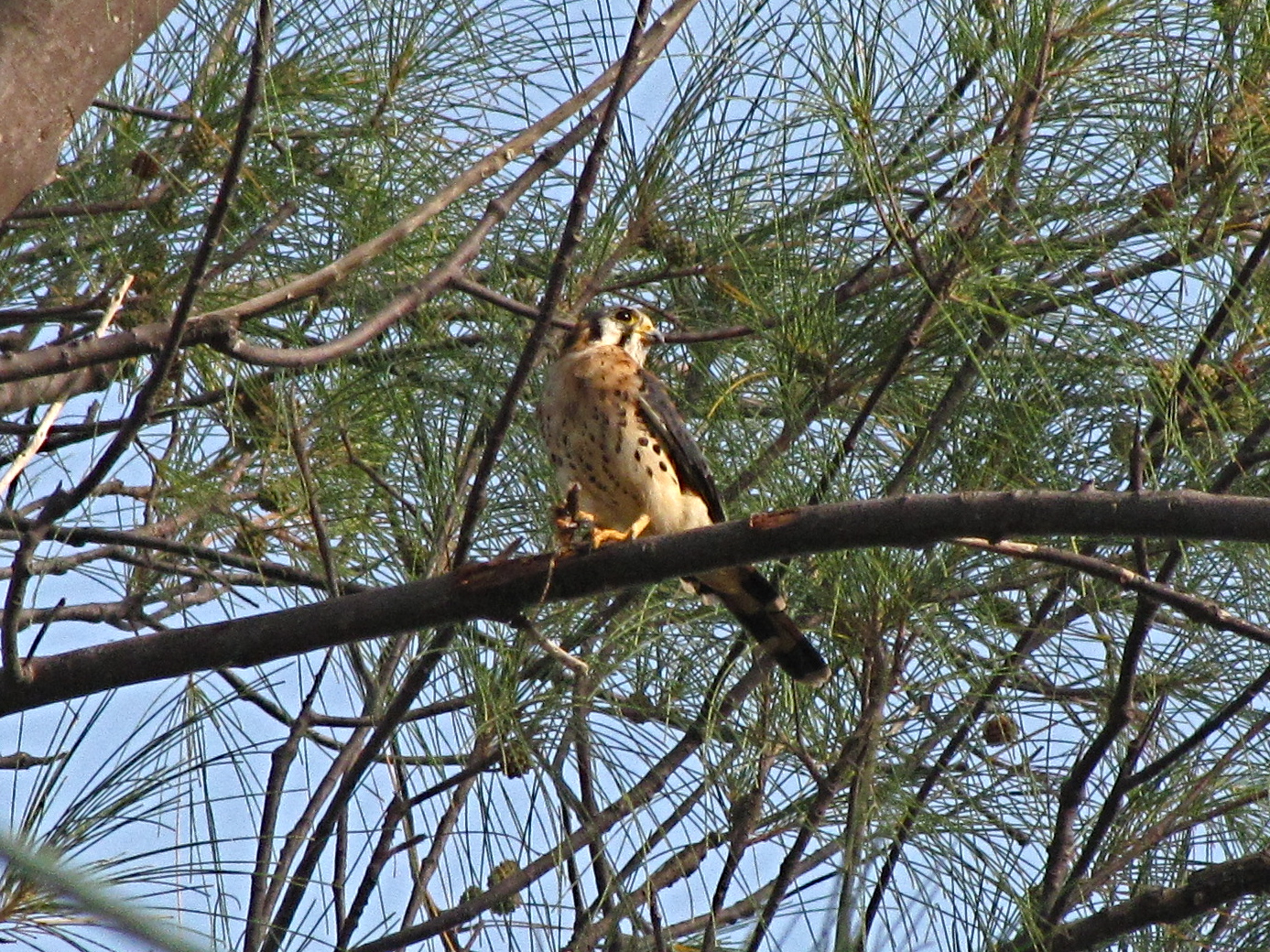 American Kestrel (male). That's a lizard in his right foot... Near El Conquistator resort, 10/6/09.