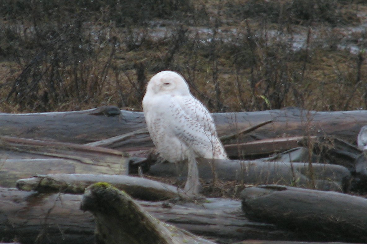 Snowy Owl, Boundary Bay, 1/21/06. One of the 18 we saw that day! (Wet and windy weather made photography difficult.)
