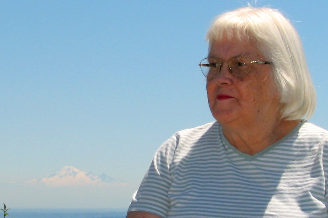 Mom at Cypress Bowl, with Mt. Baker in the background.