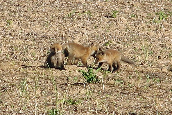 Red Fox, Paint Branch Stream Valley Park trail, MD, May 10/06. Three young pups playing on the agricultural fields. Cute!