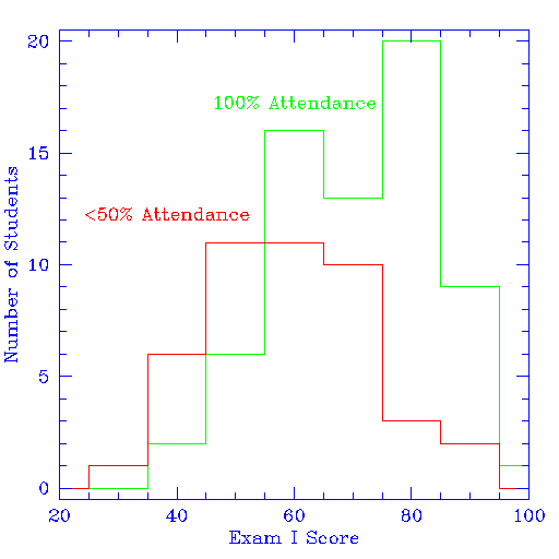 Not a surprise. Student who come to class do much better than those who do not.