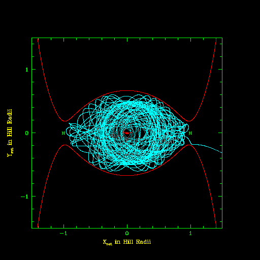is, it would follow a chaotic orbit which would bring it within a few