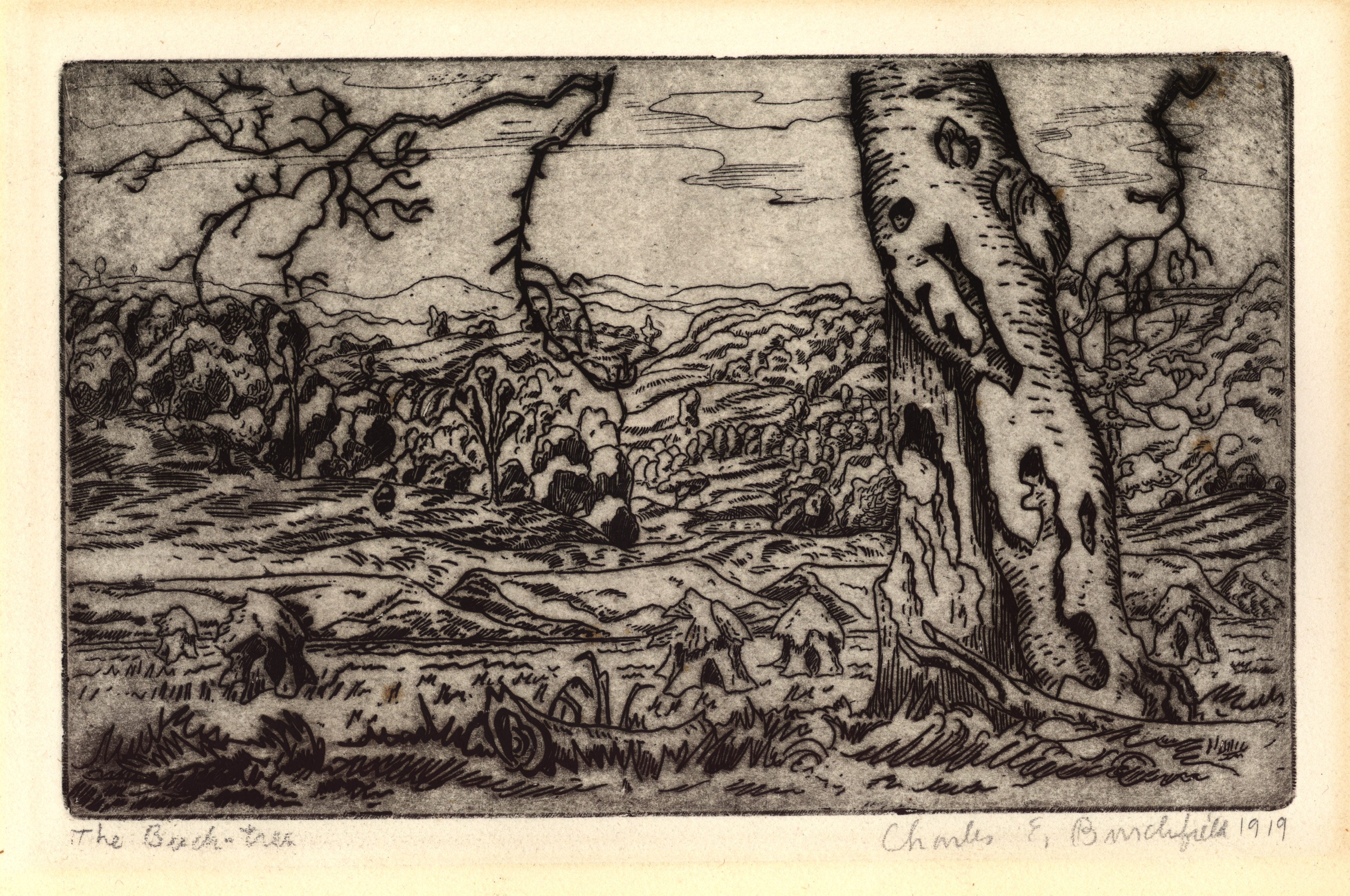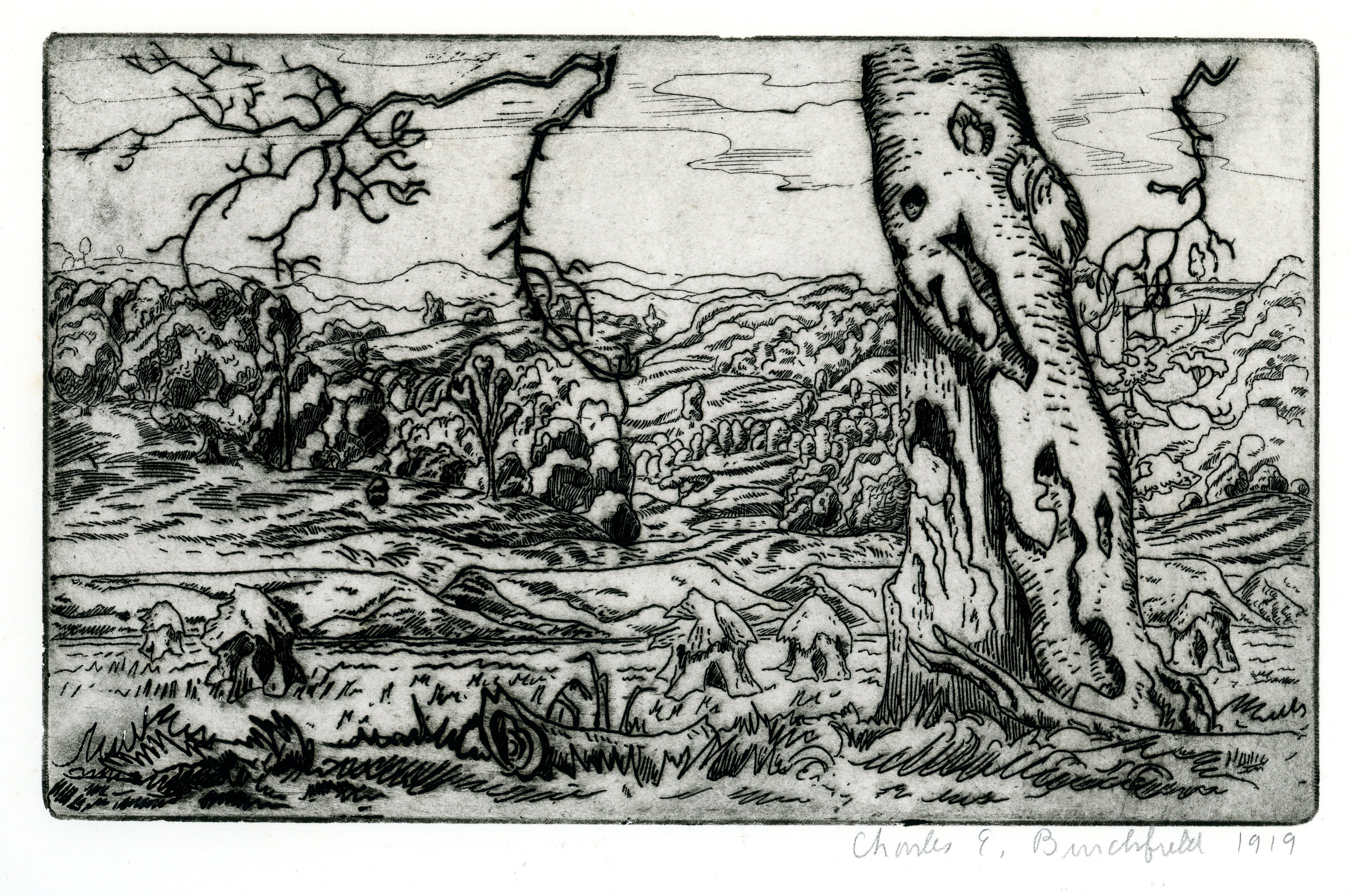 printed from this plate, in connection with an exhibition of Burchfield's drawings.
