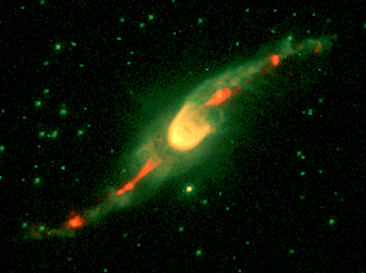 Here is an image of the protoplanetary He3-1475. This HST image shows, in unprecedented detail, jets producing a series of point-symmetric condensations. This color image was produced by combining our (Borkowski & Harrington) image obtained through the F658N [N II] filter of the HST WFPC2 (red) with a broad-band image taken by Matt Bobrowsky (Orbital Sciences Corp.) through the F555W filter (green). Our paper (K.J. Borkowski, J. Blondin and J.P. Harrington, Ap.J. Letters, 10 June 1997) discusses the production of these features by oblique shocks.