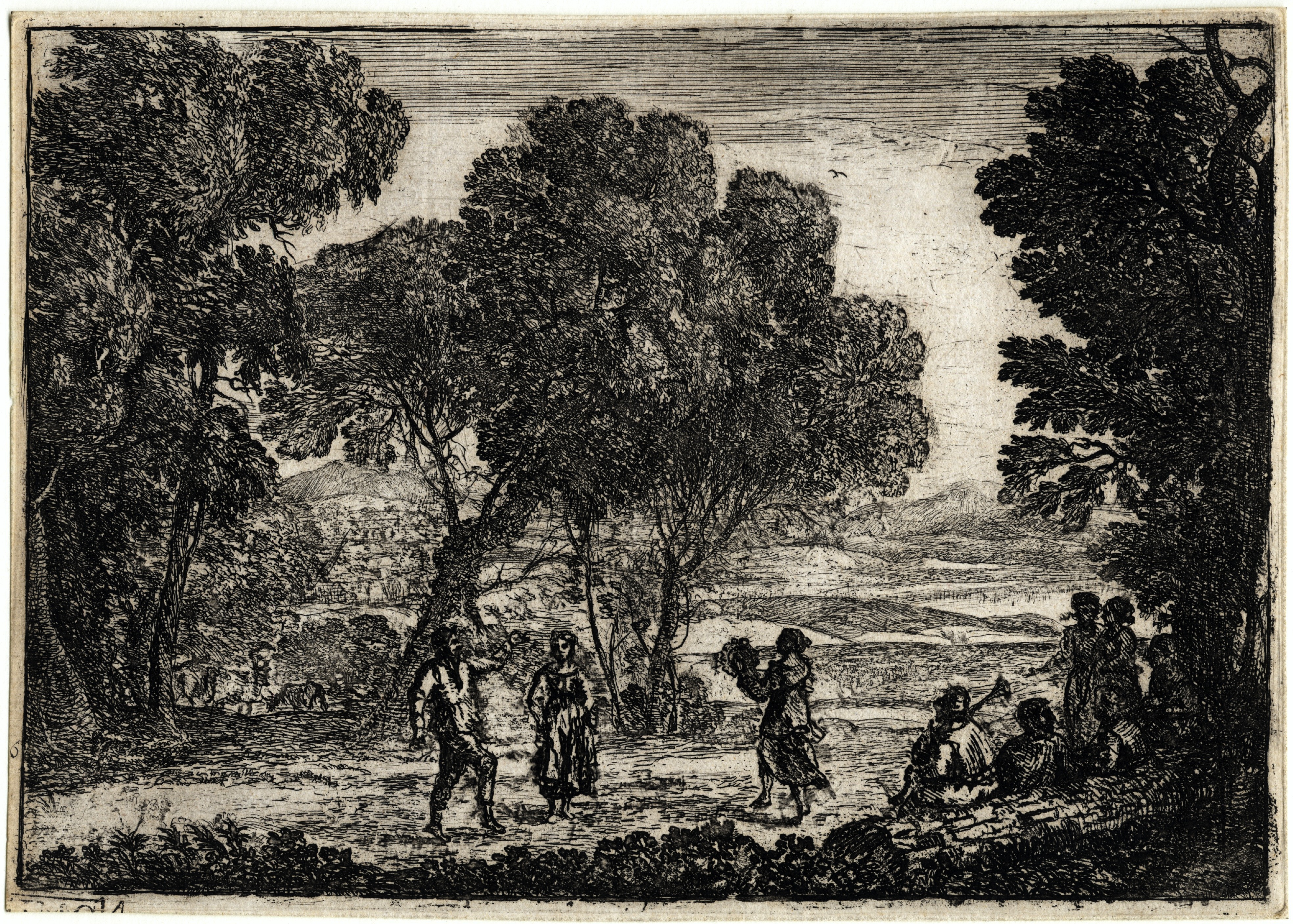 La Danse sous les arbres (The country dance, small plate) 5 1/2" x 7 3/4" [Mannocci 19, v A (of vii)] (1637)