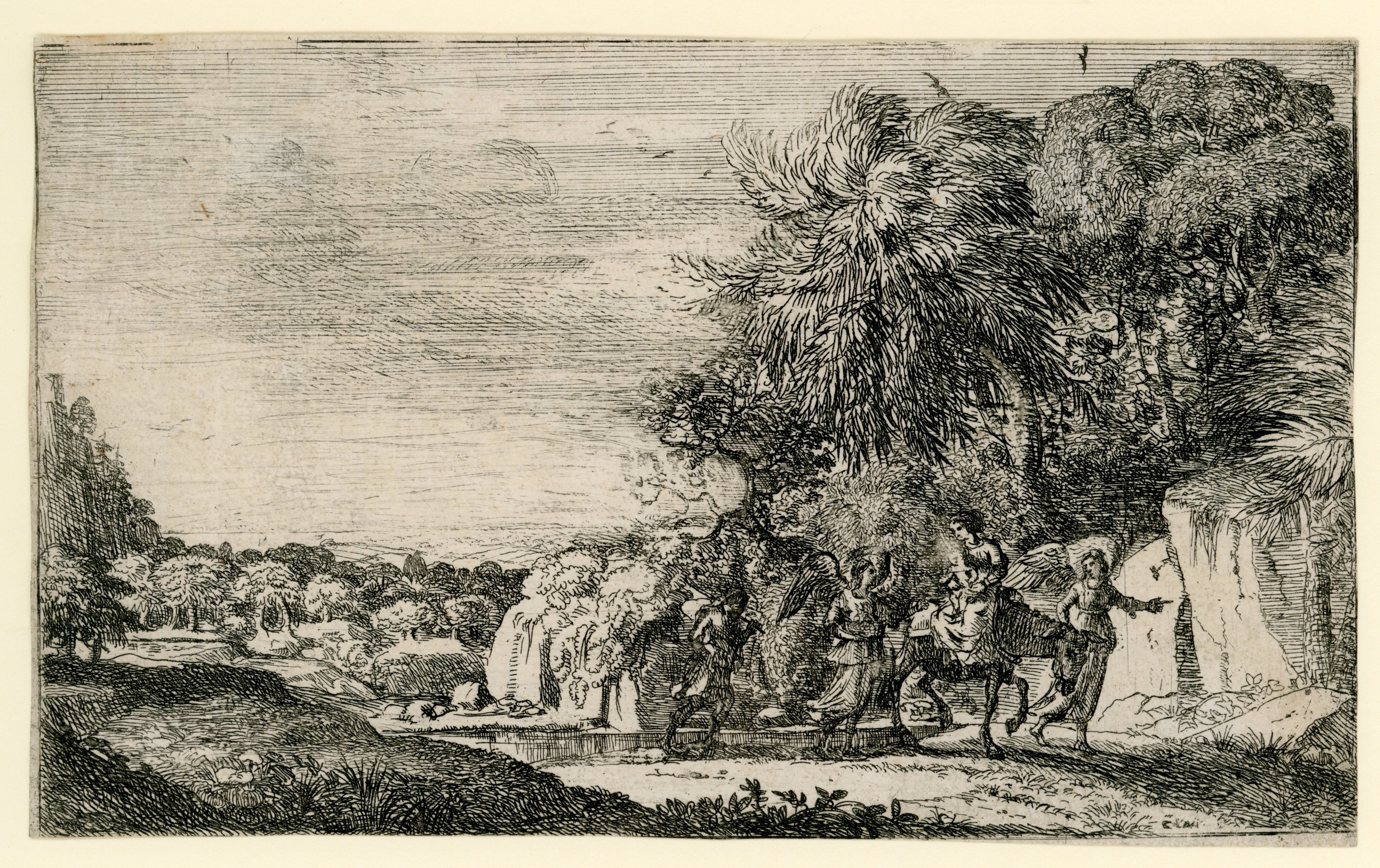 La Fuite en Egypte (The Flight into Egypt) 4 1/16 x 6 11/16" (sheet) [Mannocci 9, i (of iv)] (1630-33)