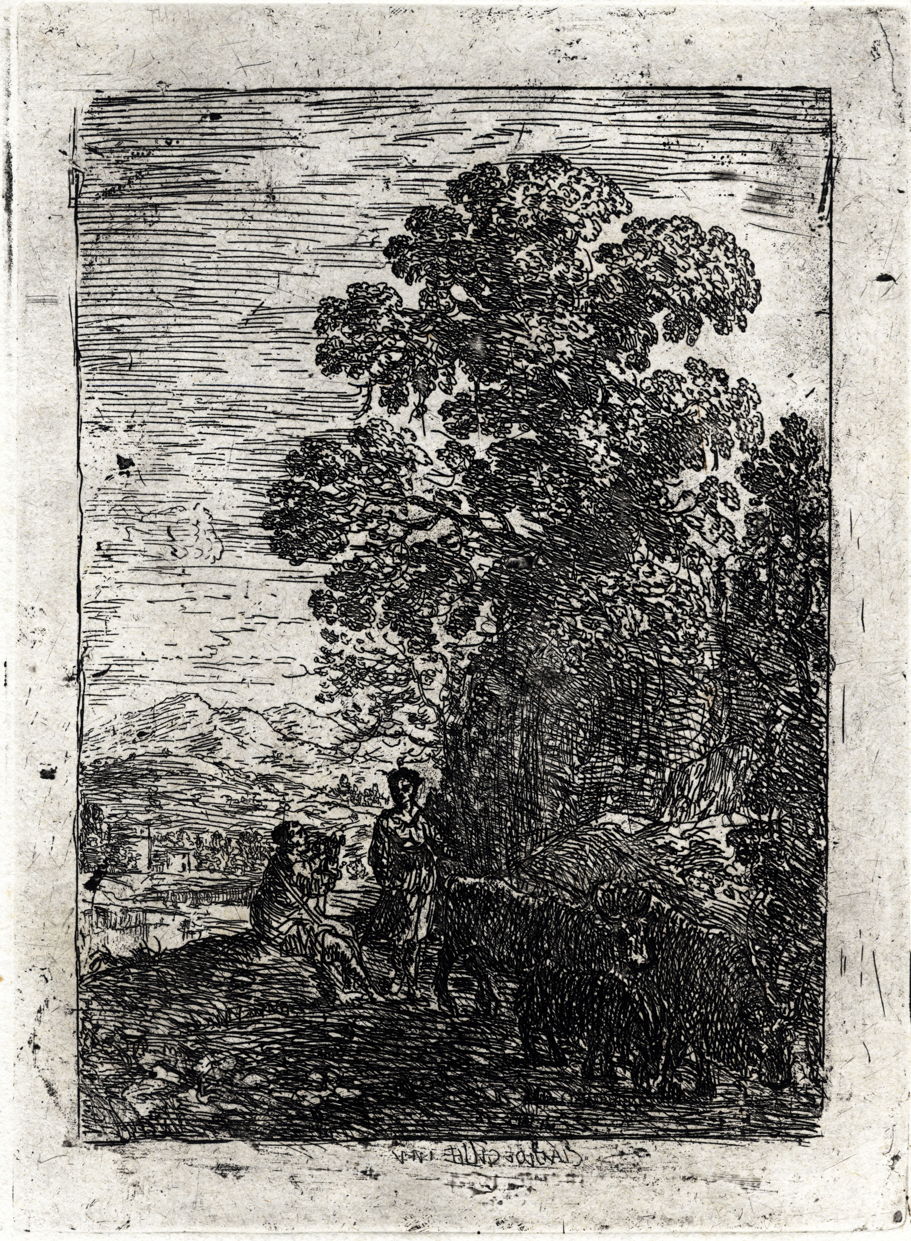Le Patre et la bergere (The herdsman and the shepherdess) 7" x 5 1/8" [Mannocci 3, i (of iii)] (1630)