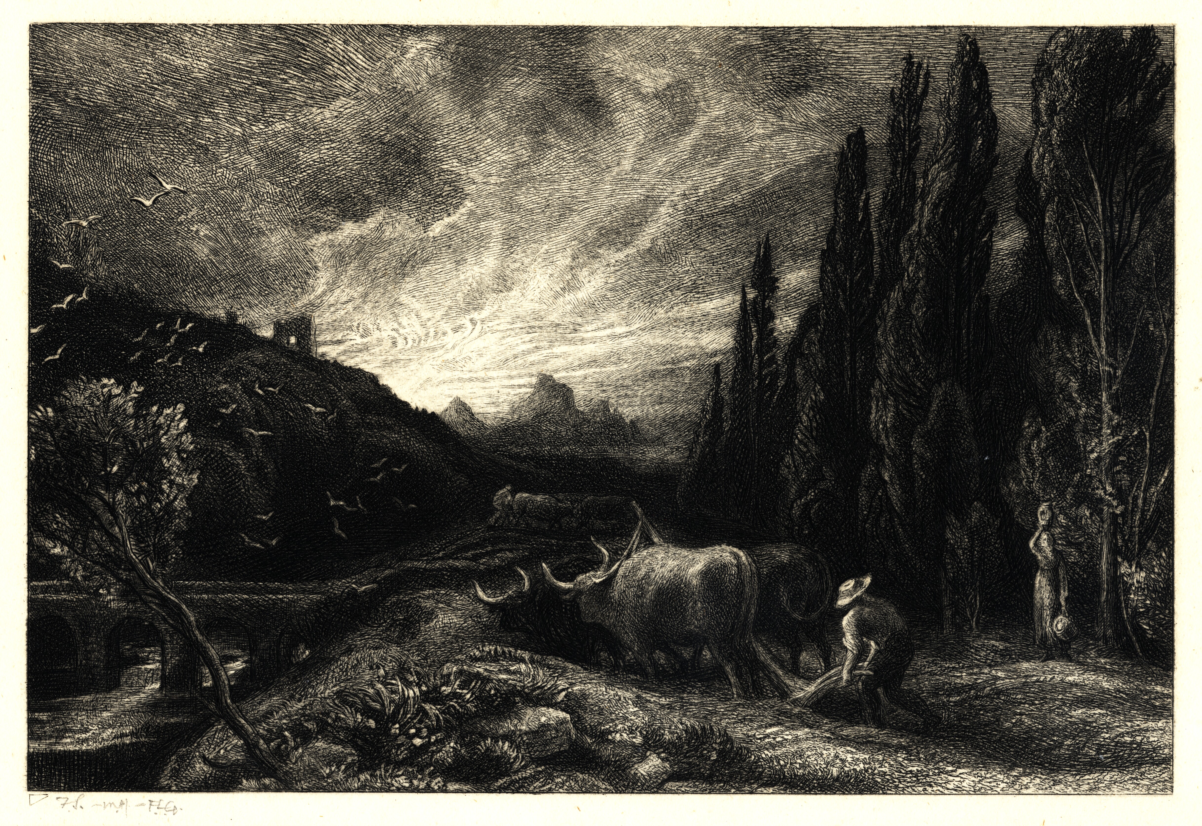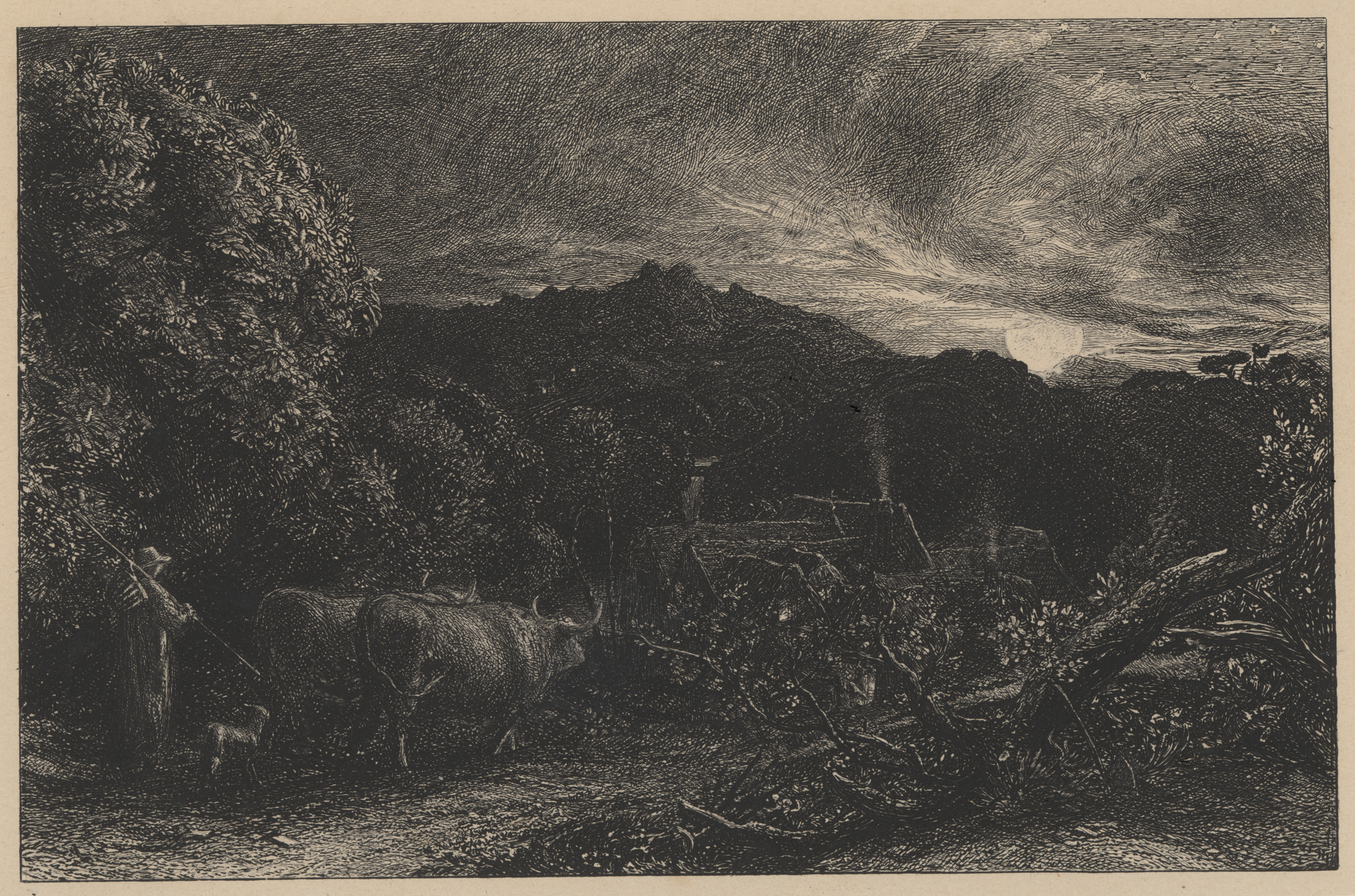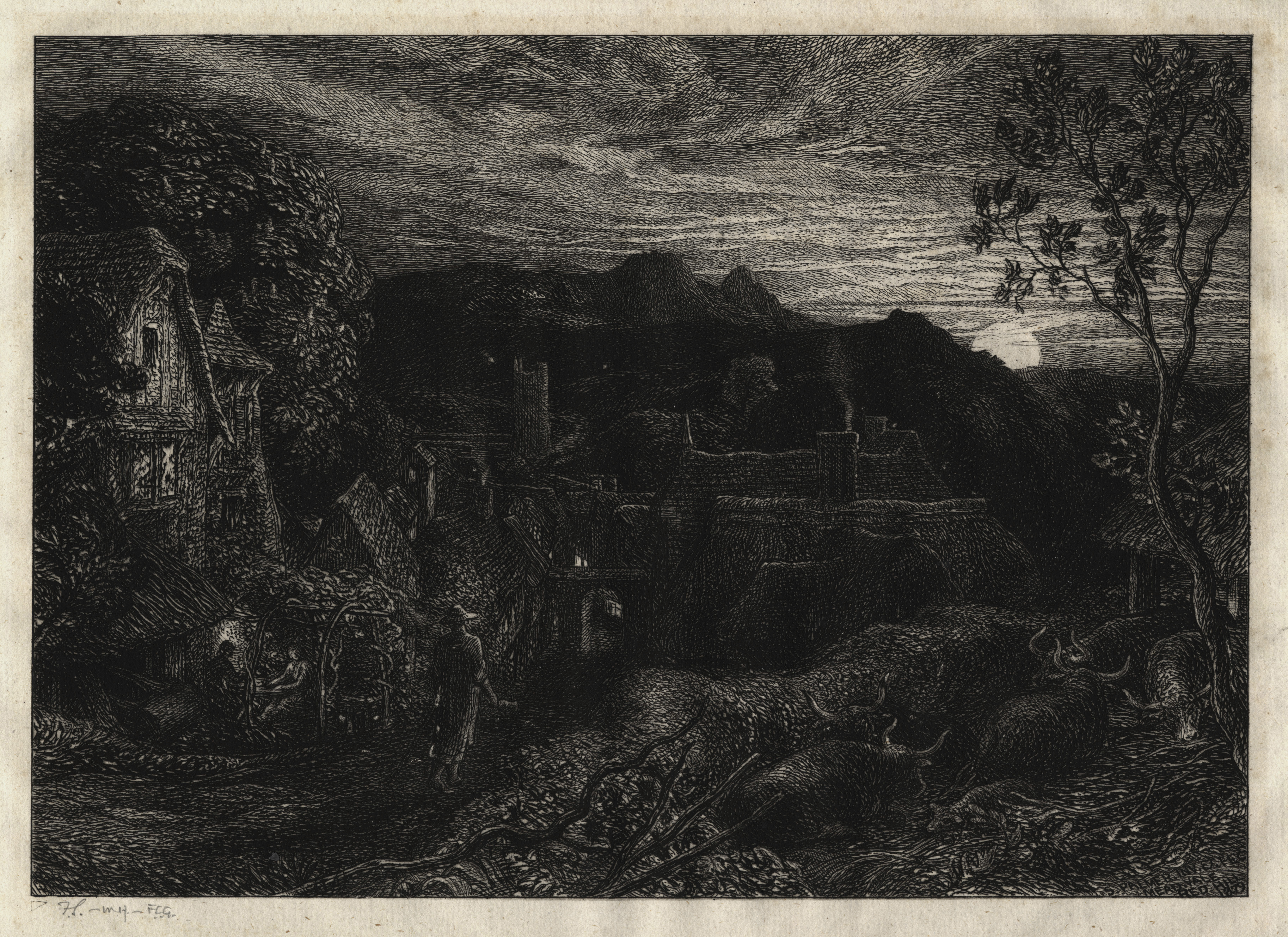The Bellman is one of Palmer's last etchings. He went through six states to