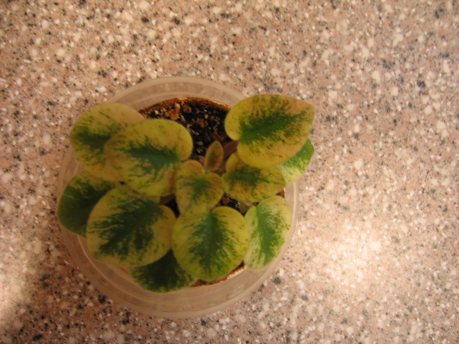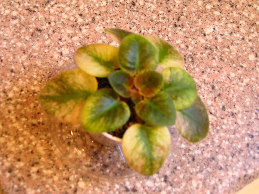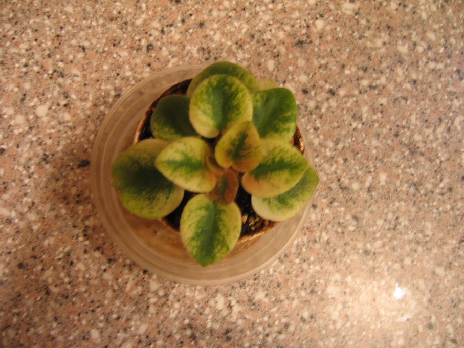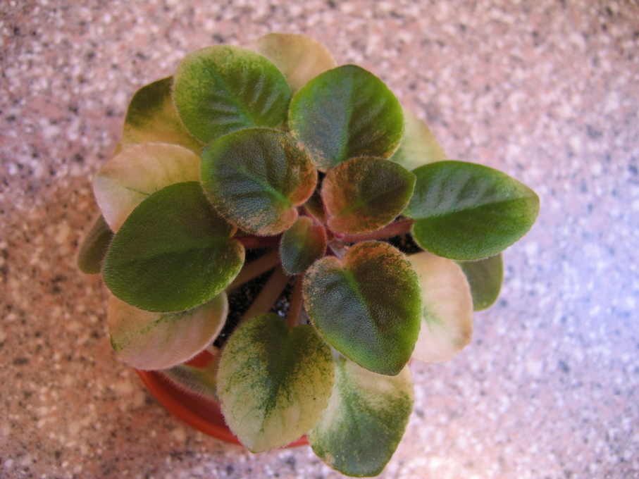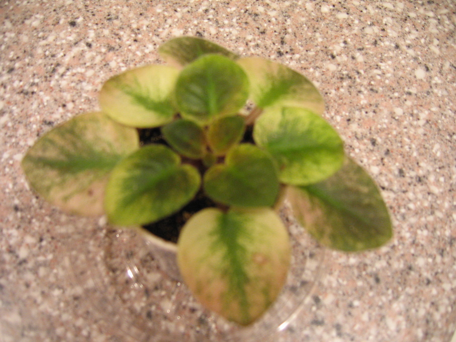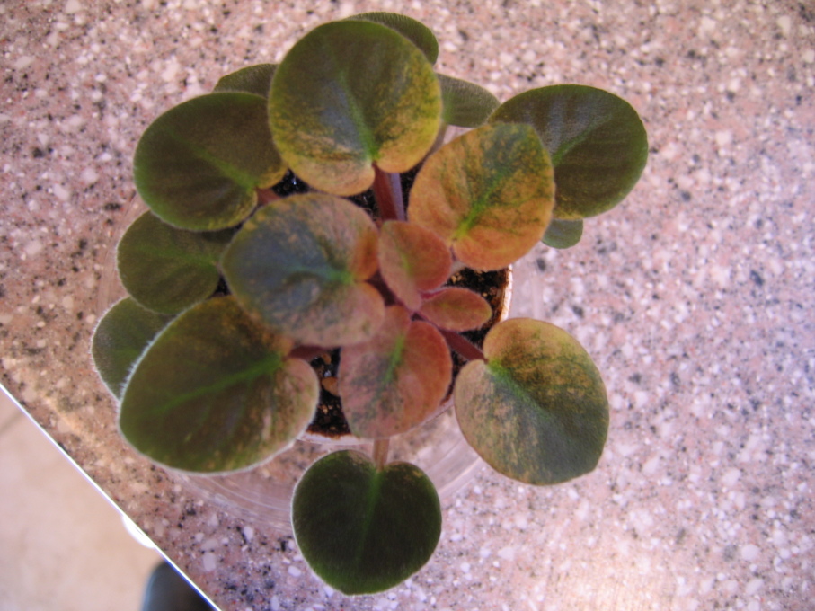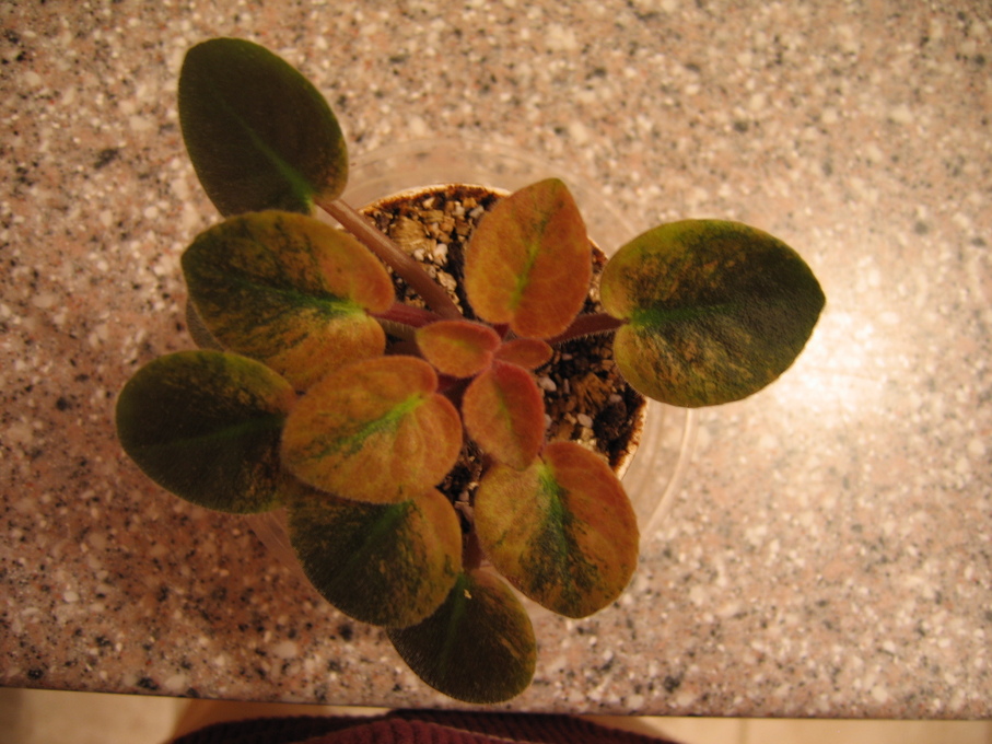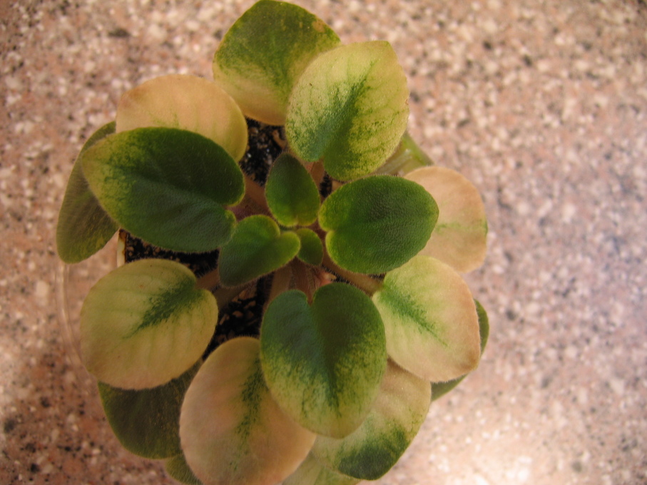 - April 5, 2009 (Powdery mildew from semiminiature african violet Rob's Calypso Beat has spread to this plant.)