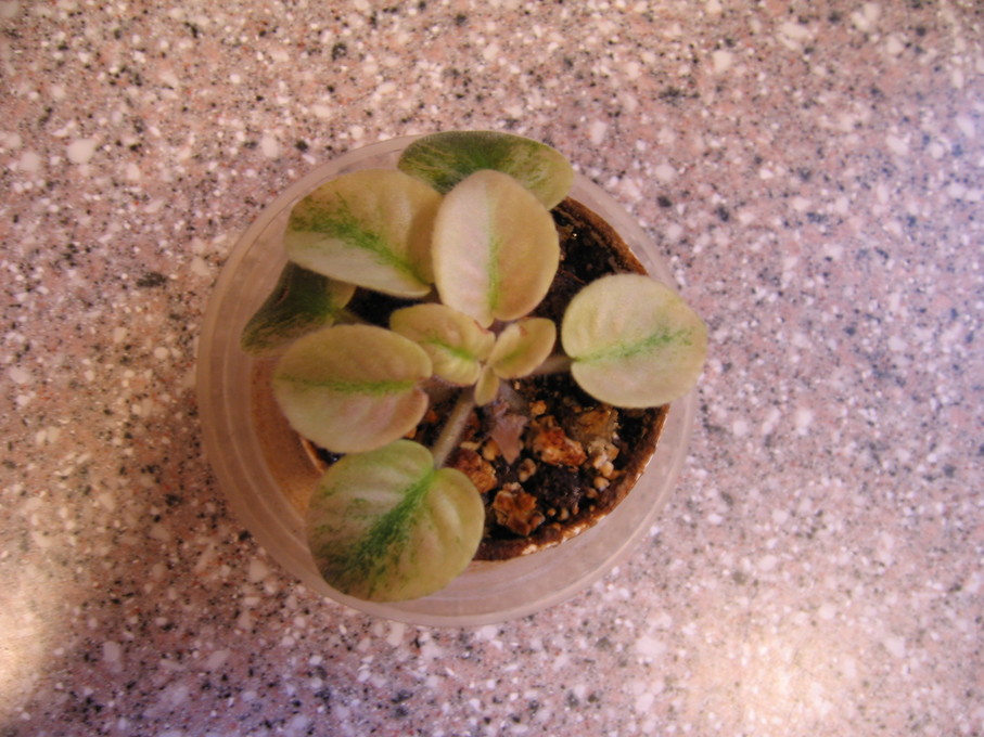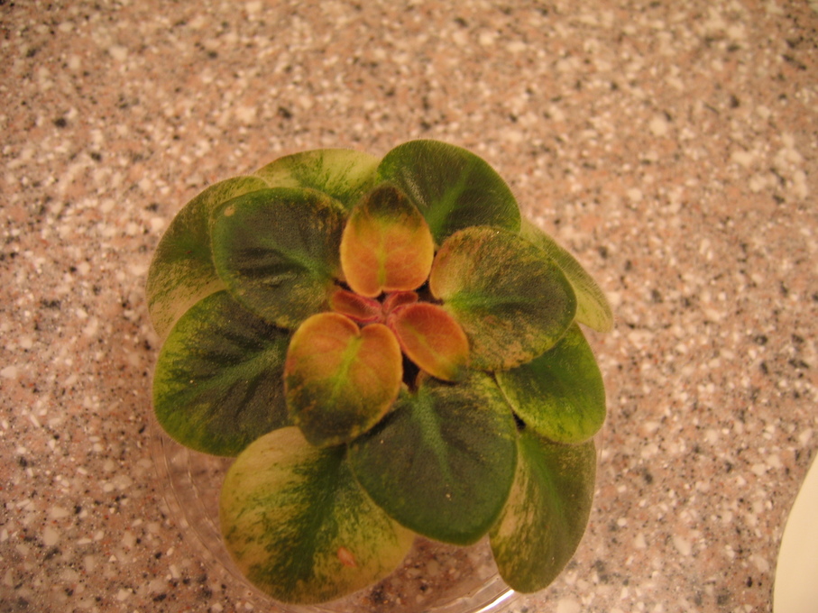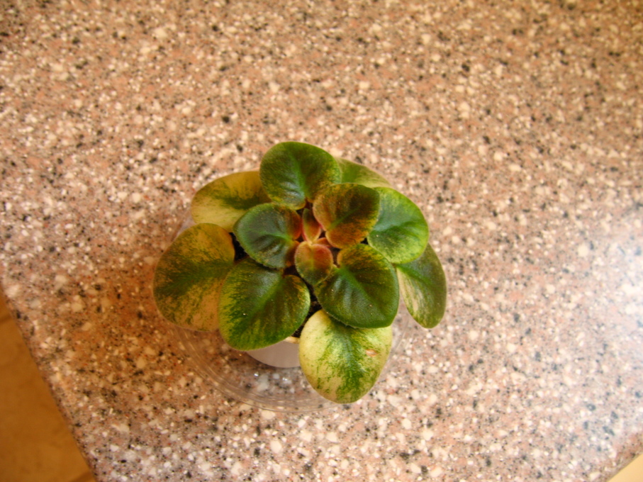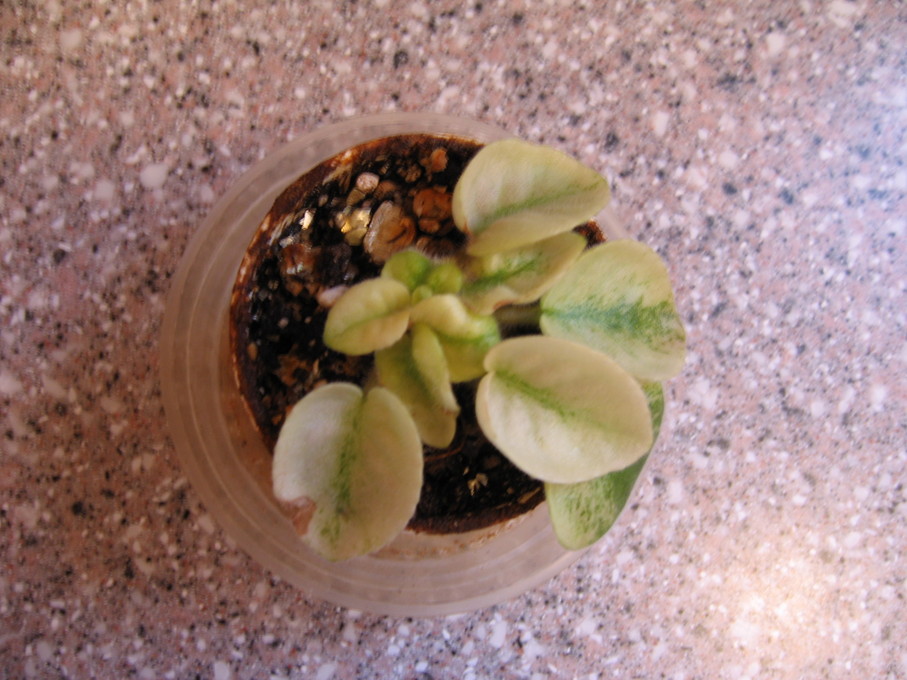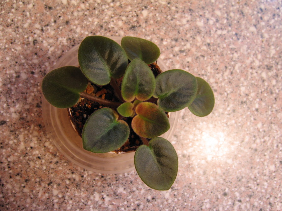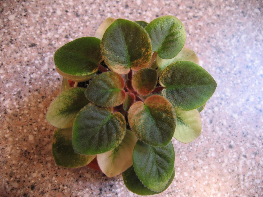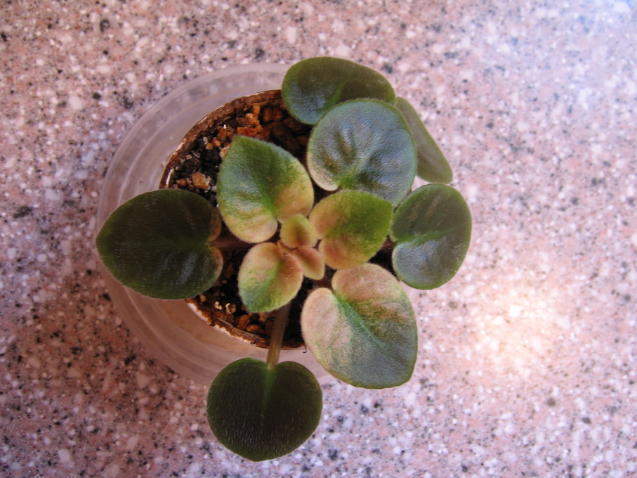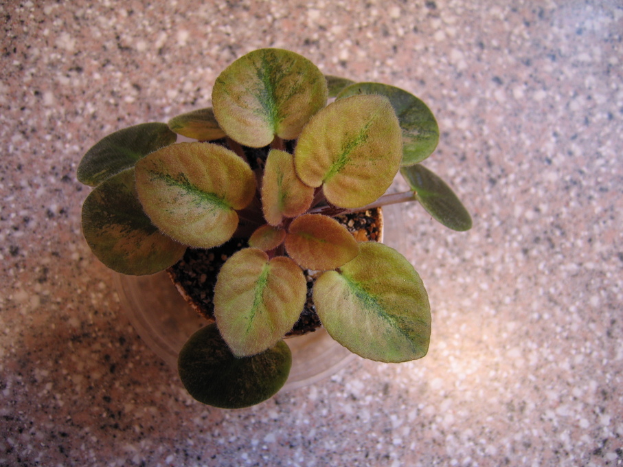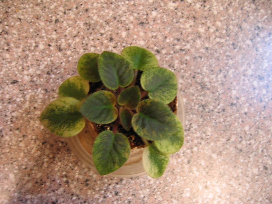 - April 5, 2009 (Powdery mildew from semiminiature african violet Rob's Calypso Beat has spread to this plant.)