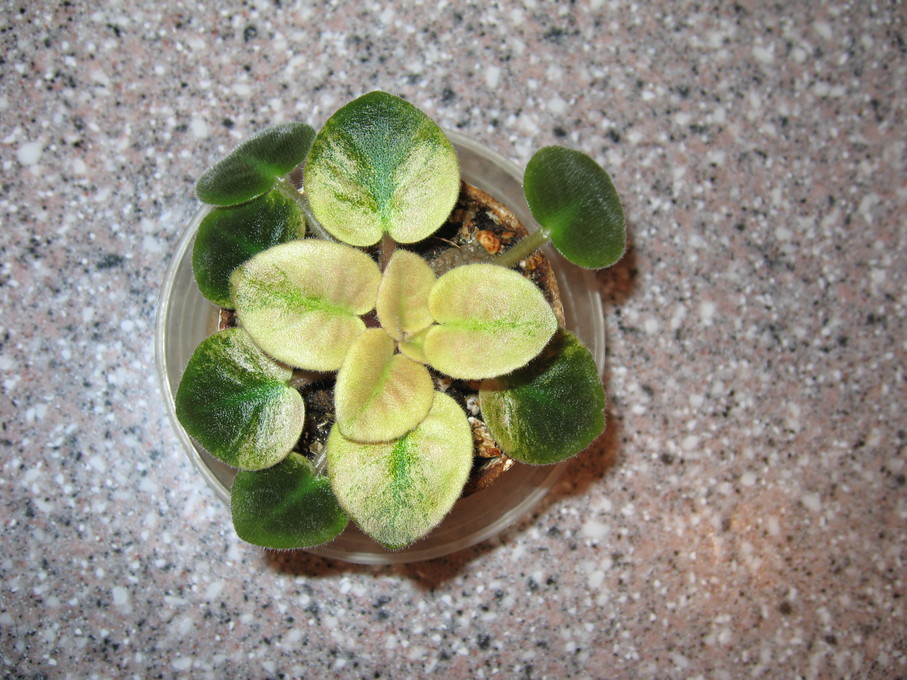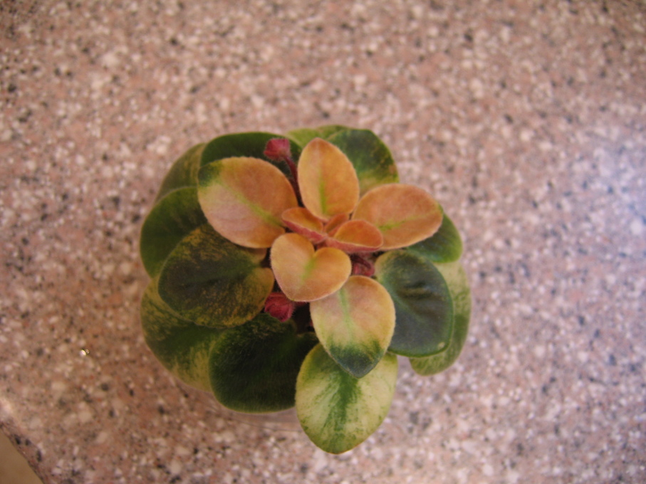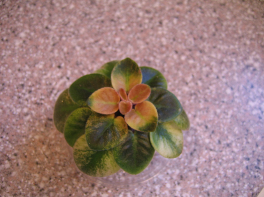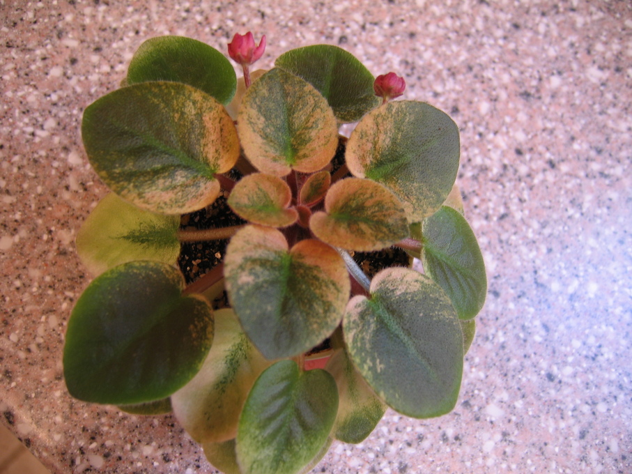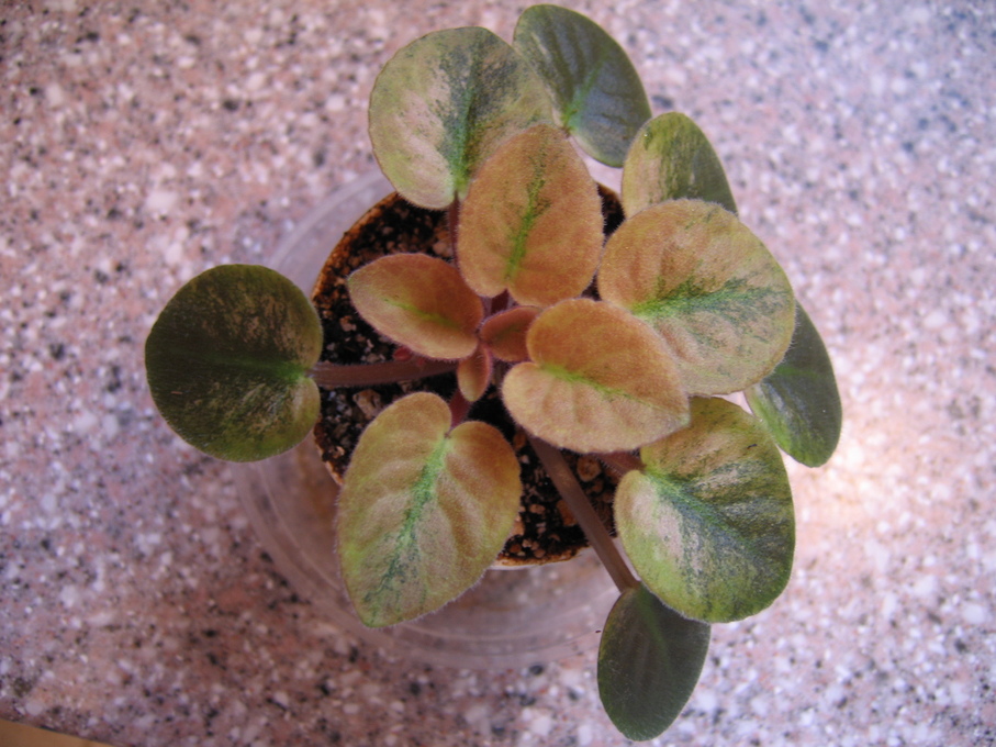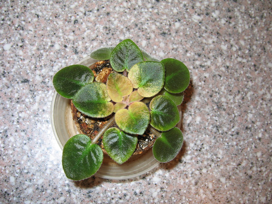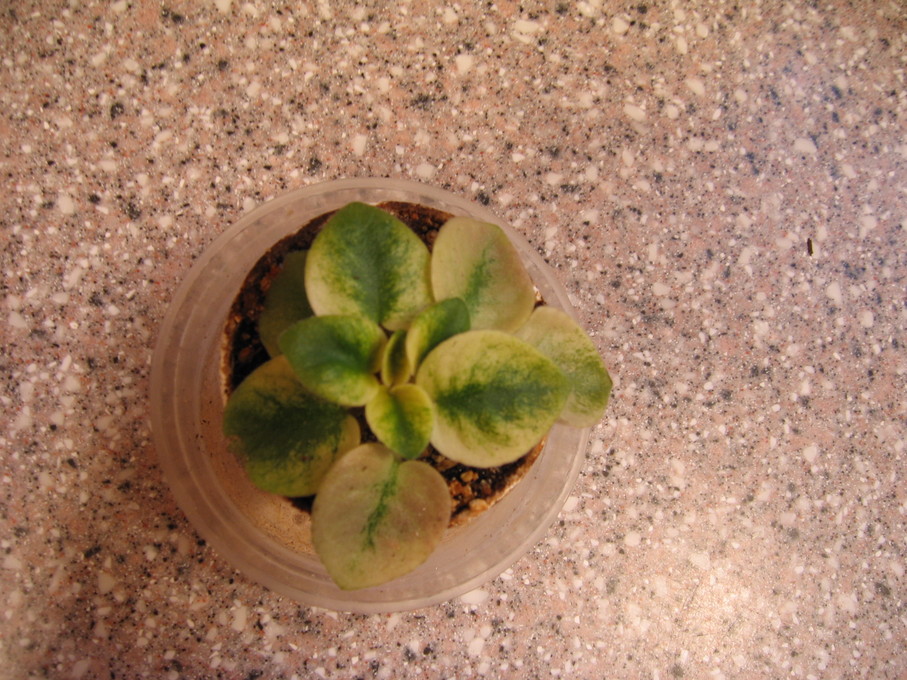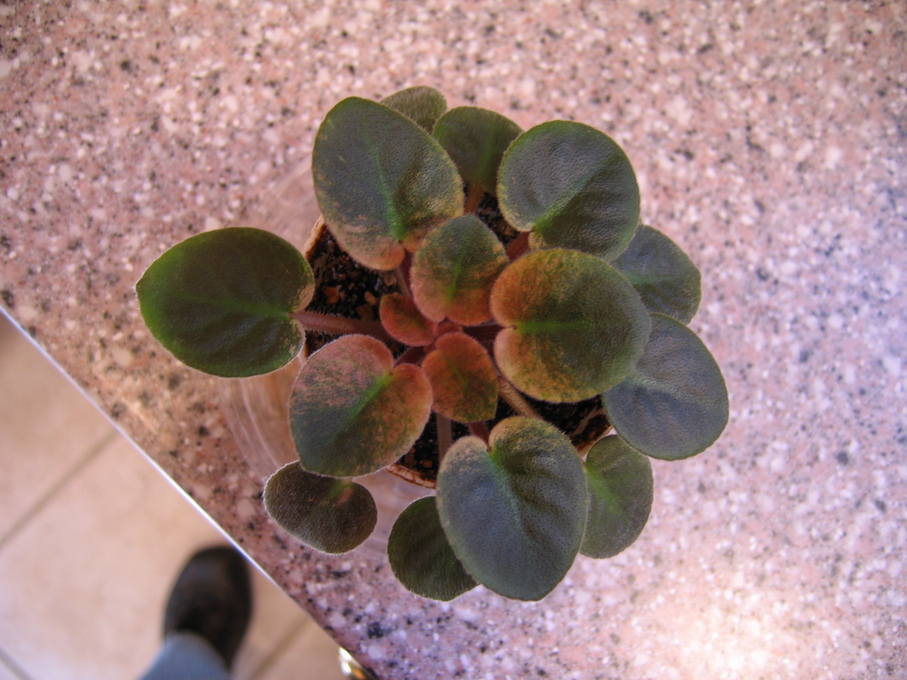 - April 5, 2009 (Powdery mildew from semiminiature african violet Rob's Calypso Beat has spread to this plant.)
