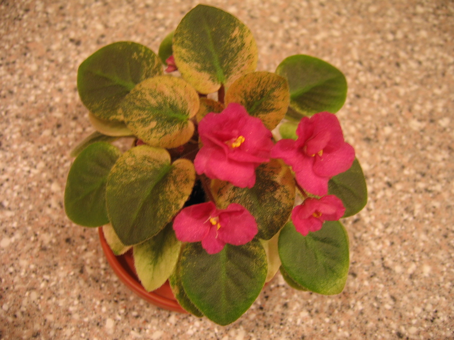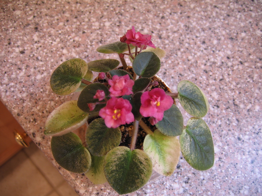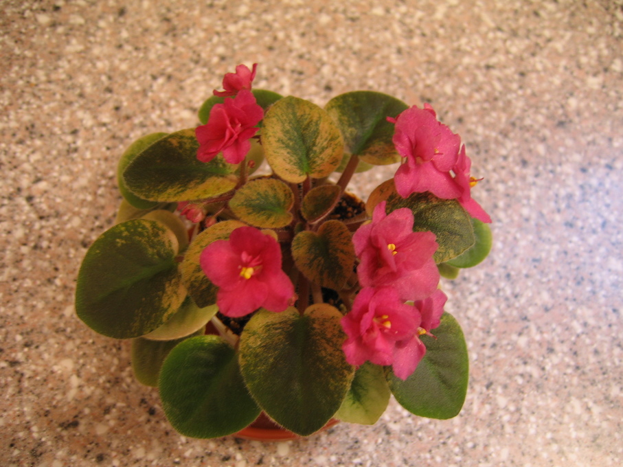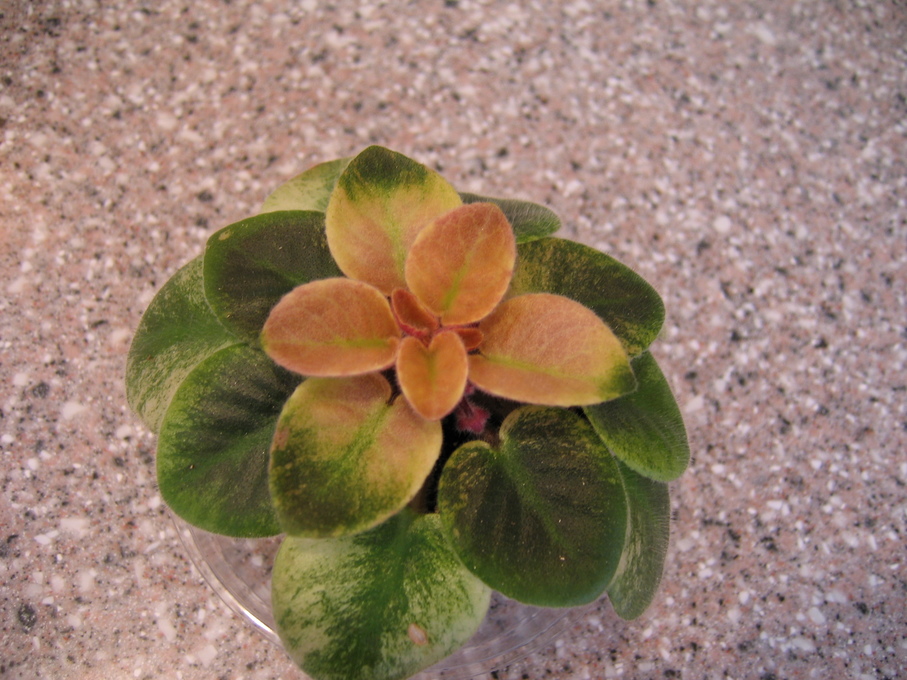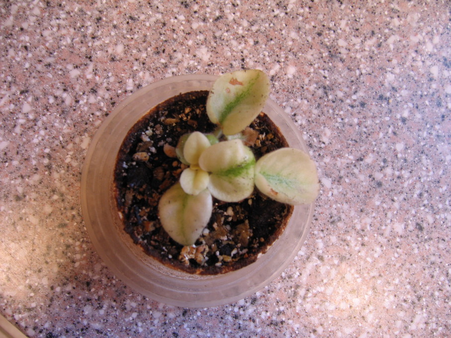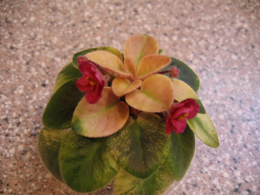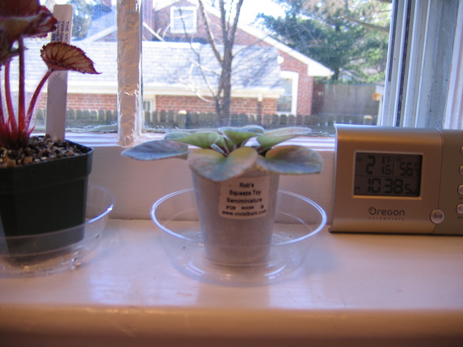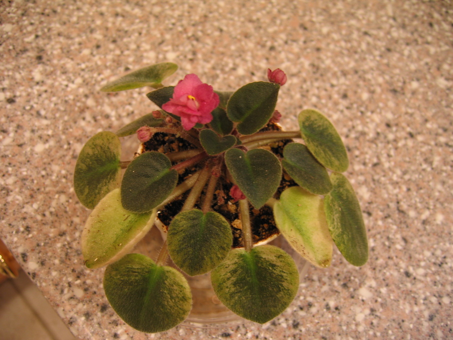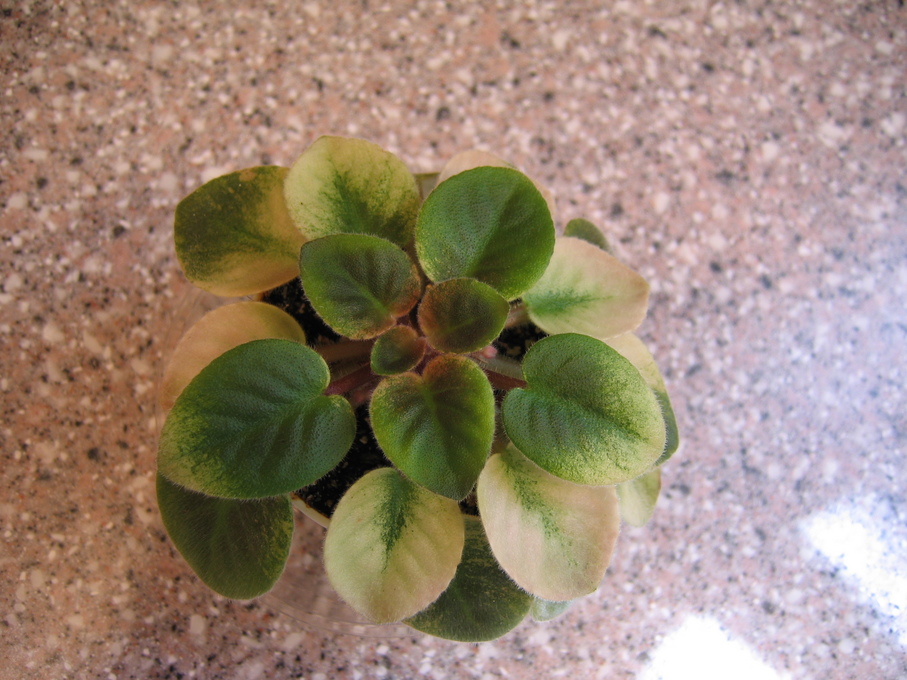 - April 5, 2009 (Powdery mildew from semiminiature african violet Rob's Calypso Beat has spread to this plant.)