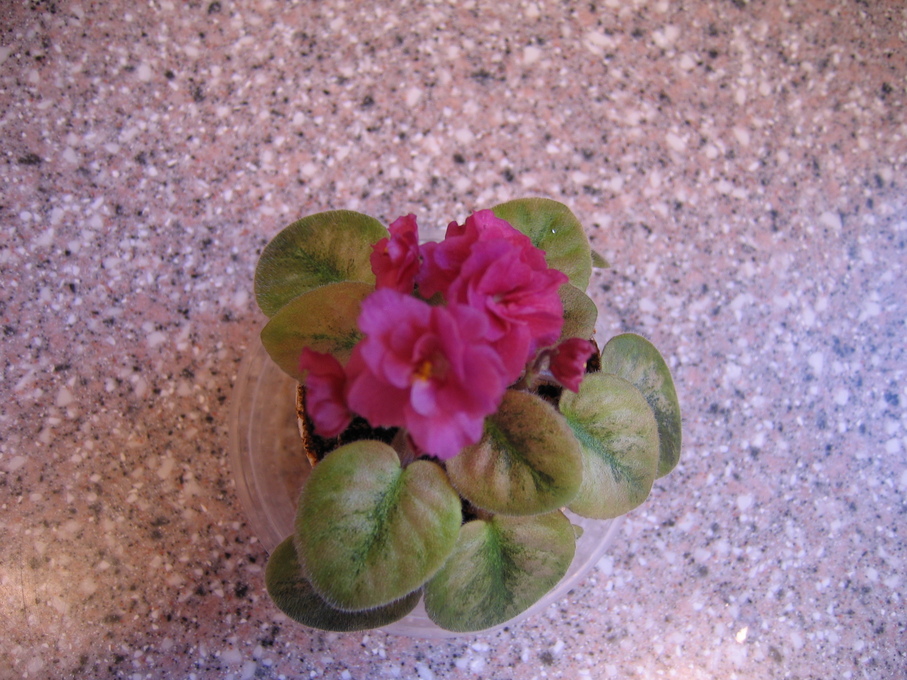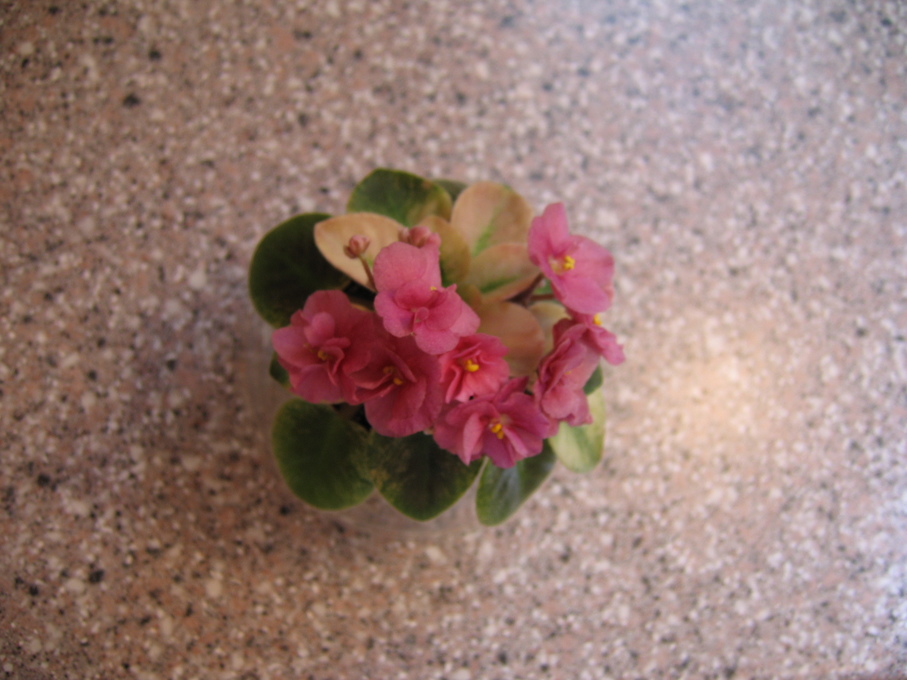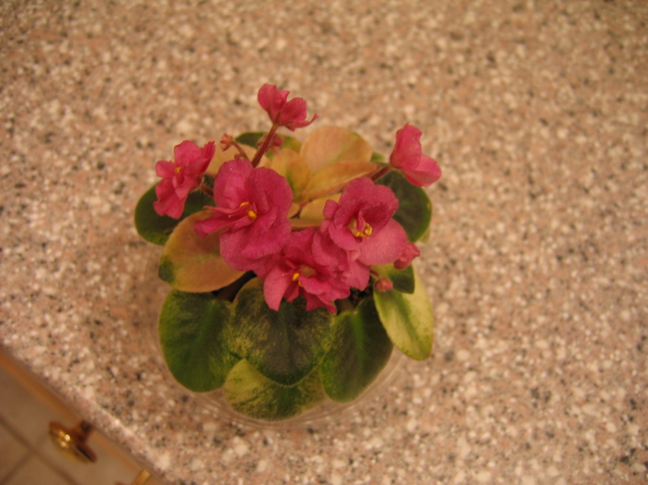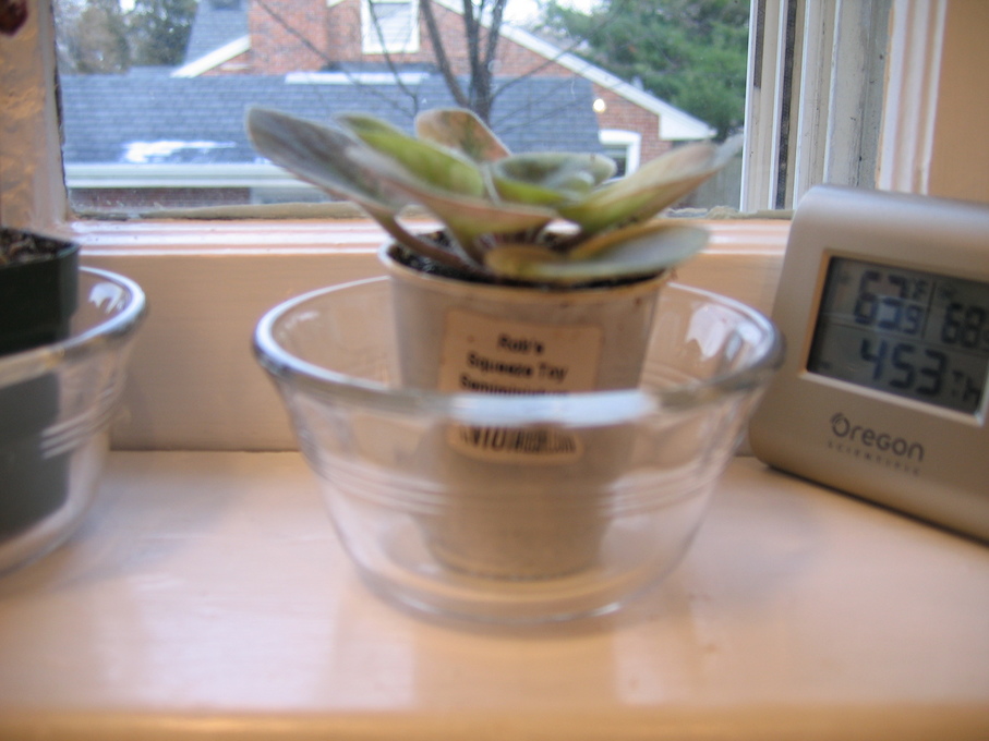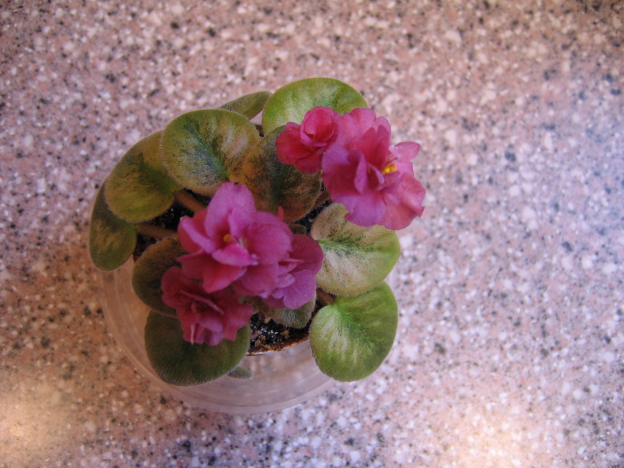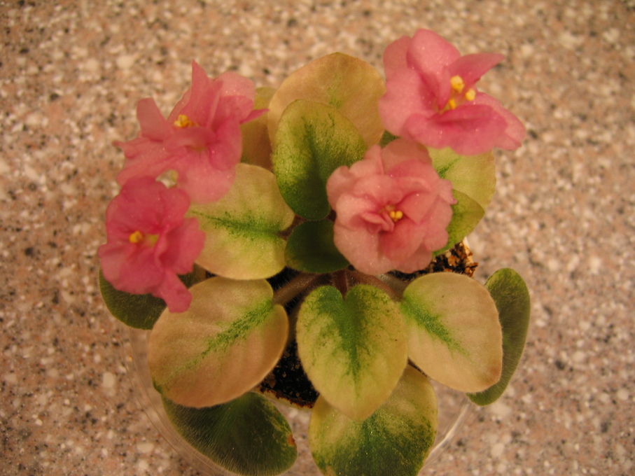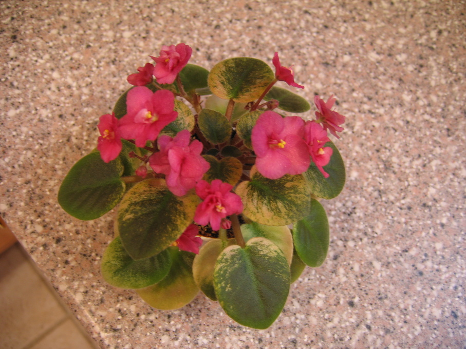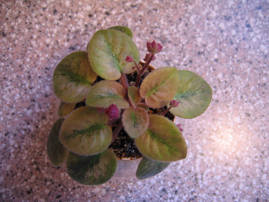 - April 5, 2009 (Powdery mildew from semiminiature african violet Rob's Calypso Beat has spread to this plant.)