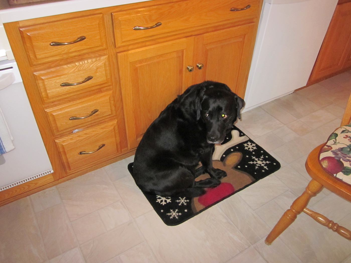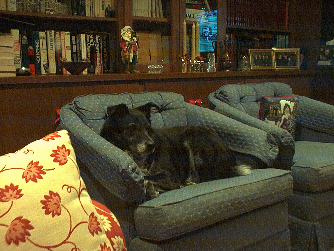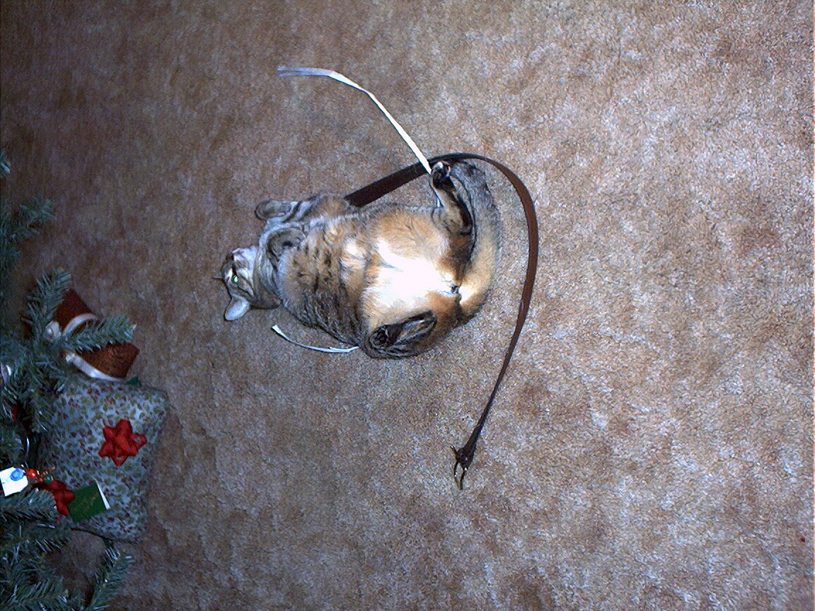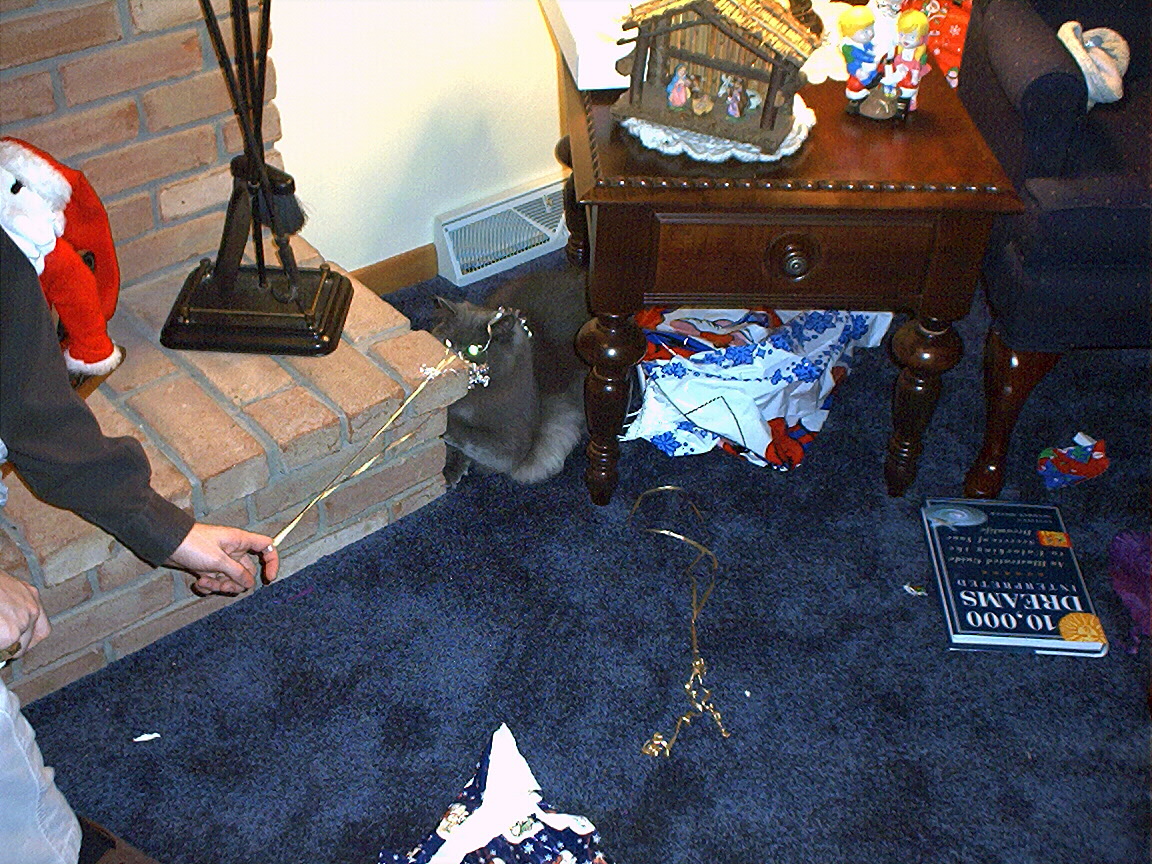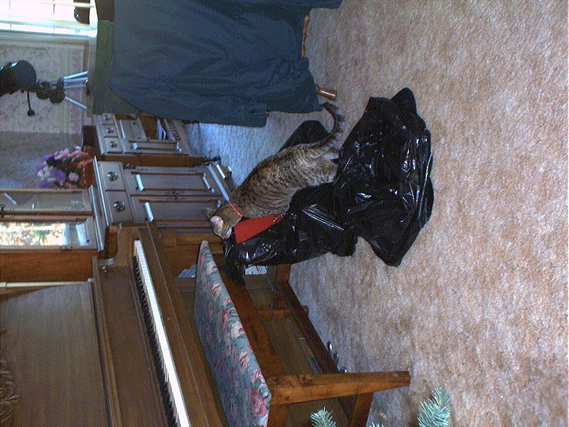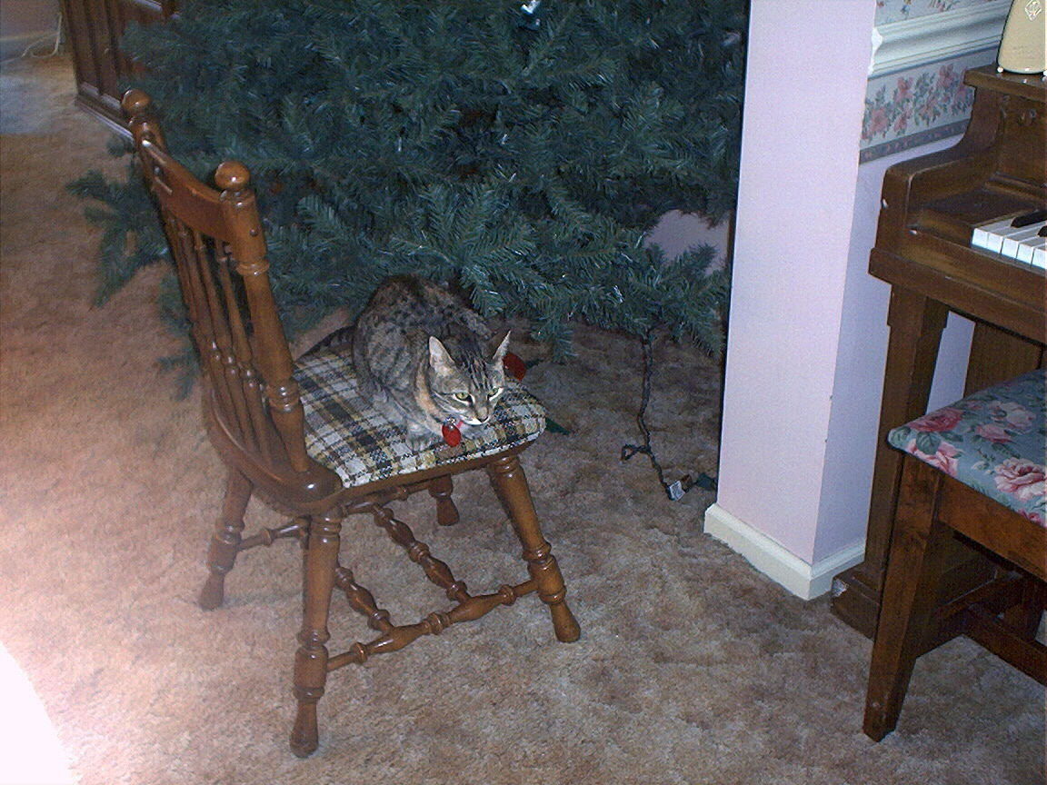 Electra exploring the chair we moved in order to set up the Christmas tree.
