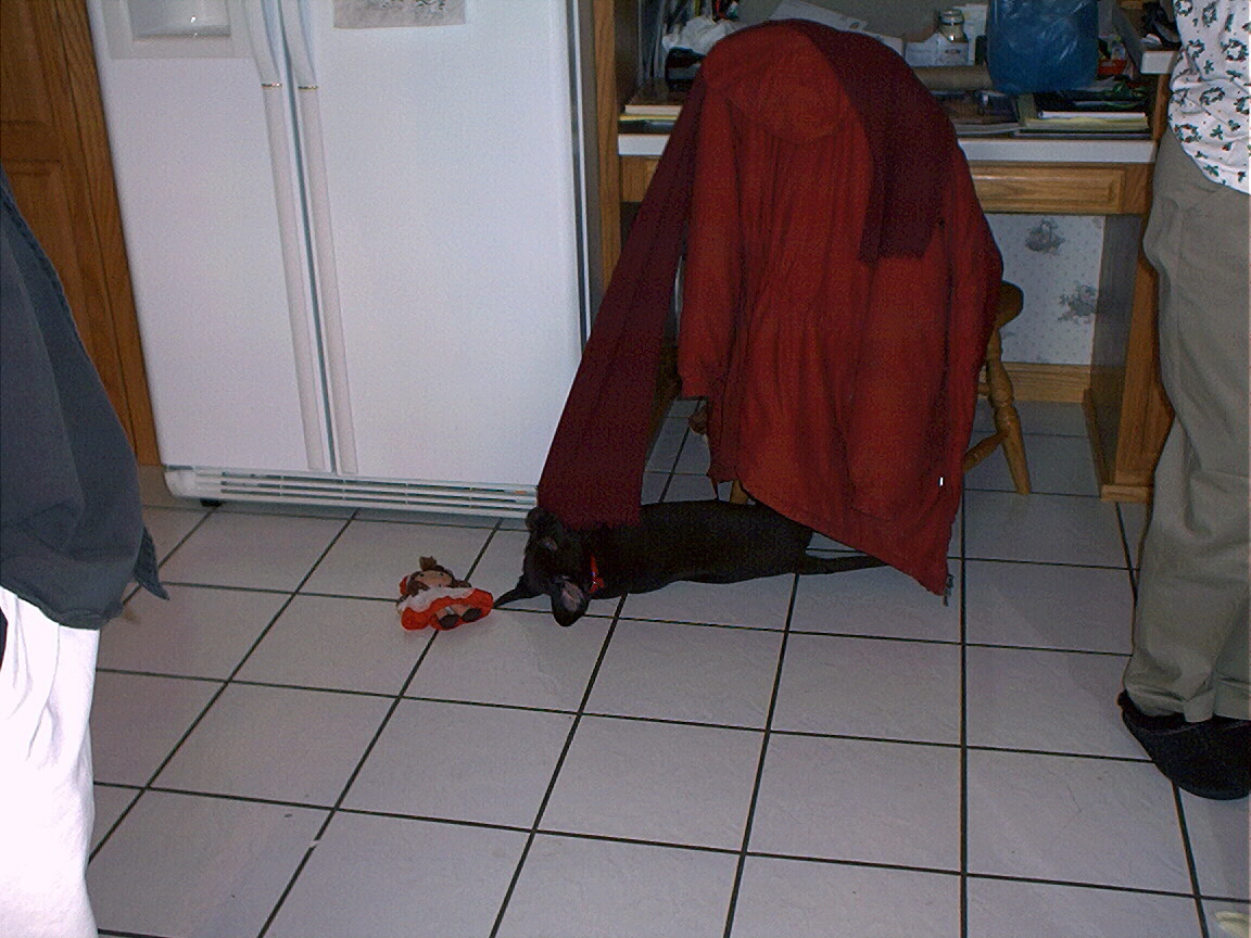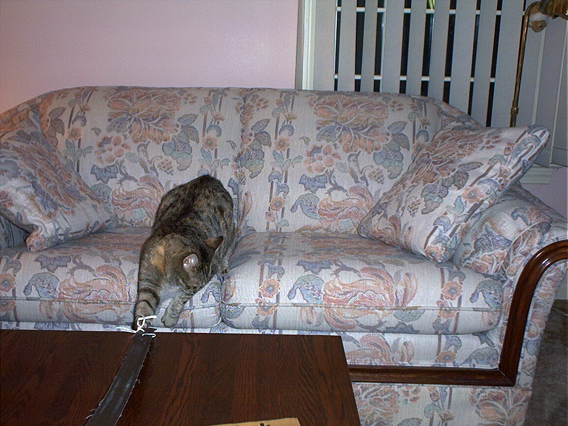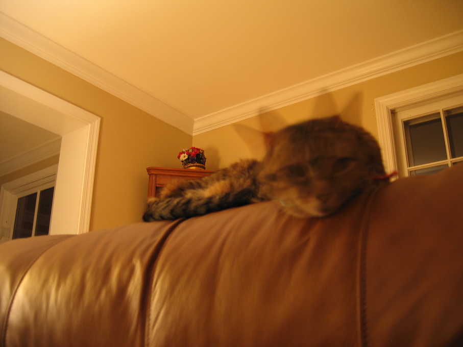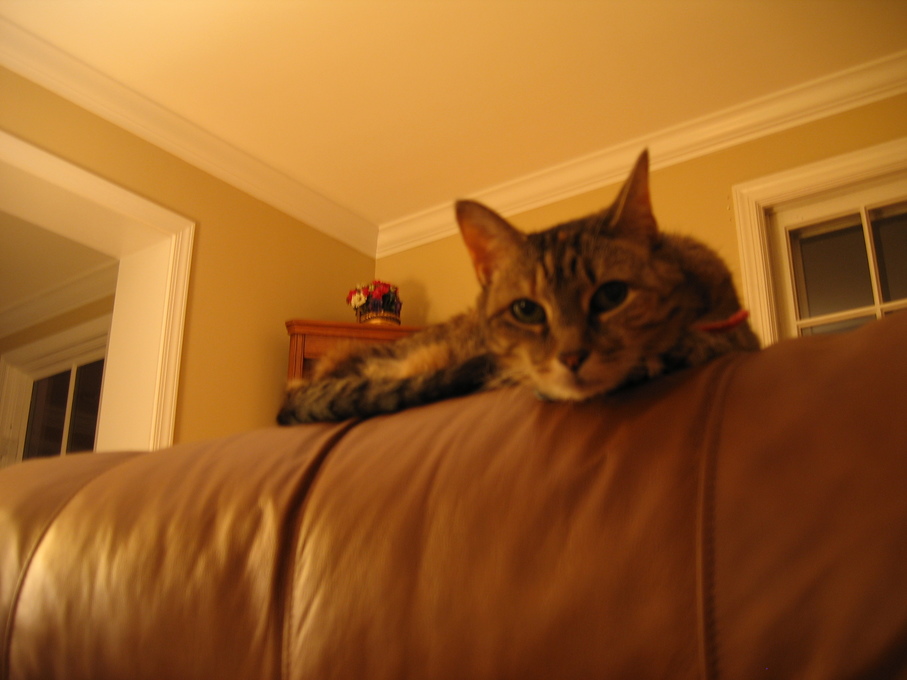 Electra sneaking up on me from behind the couch