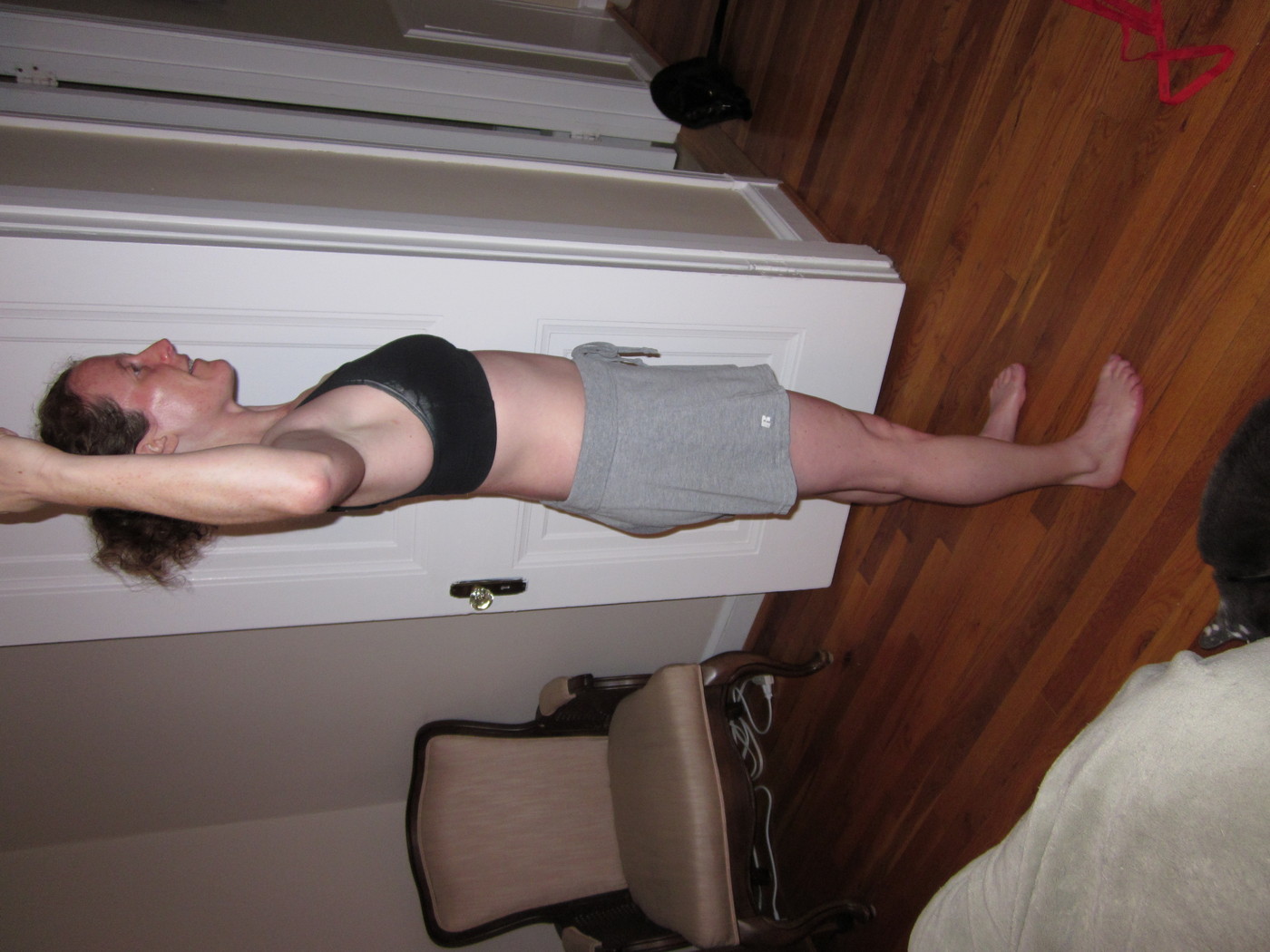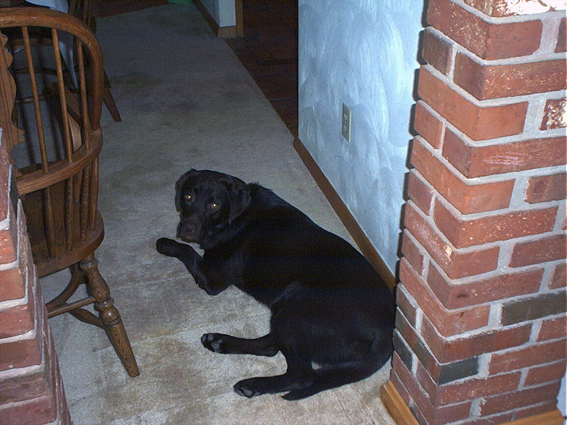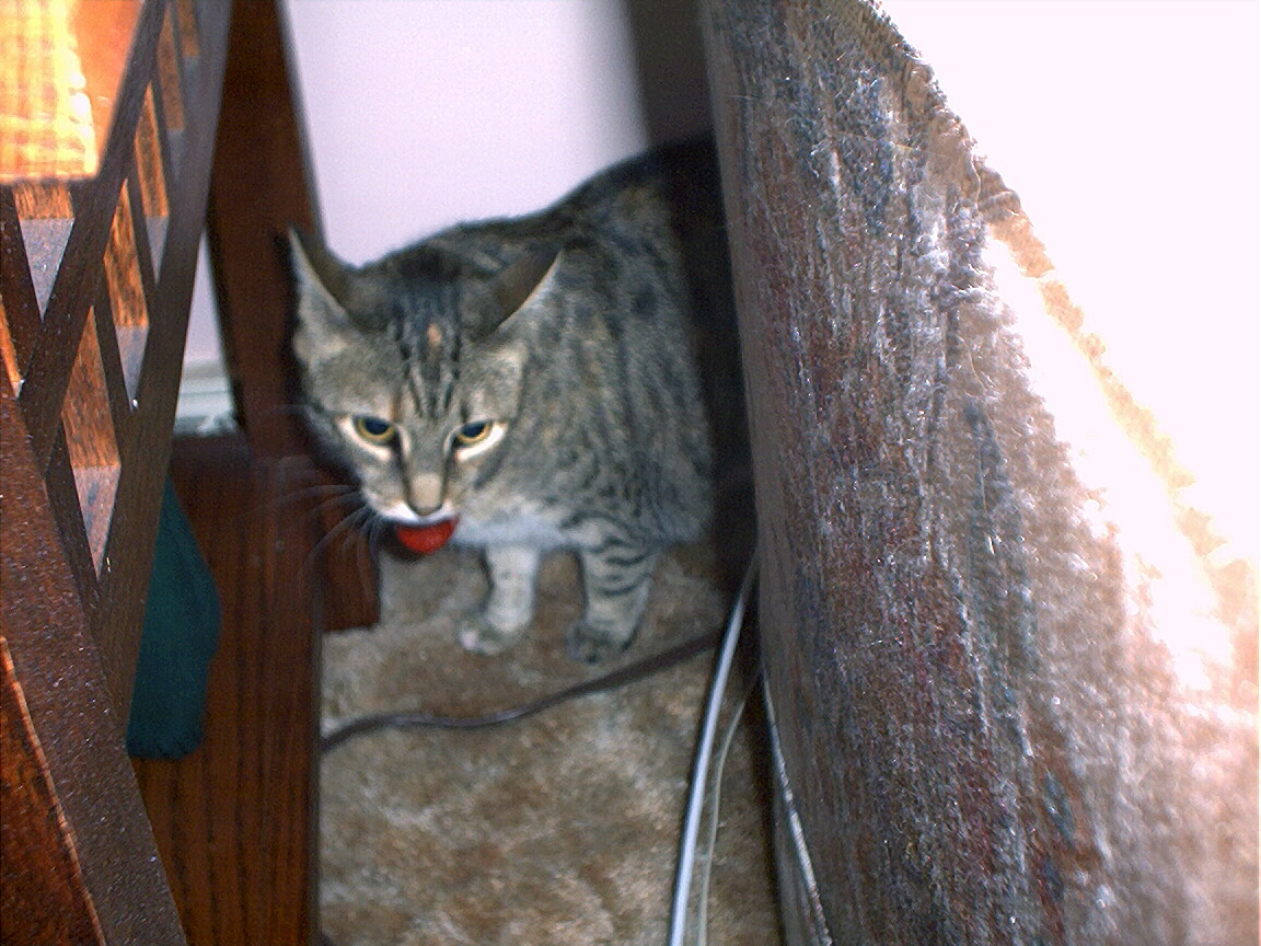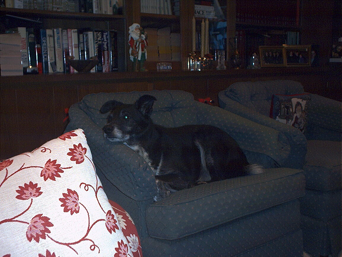 Electra sneaking up on me from behind the couch