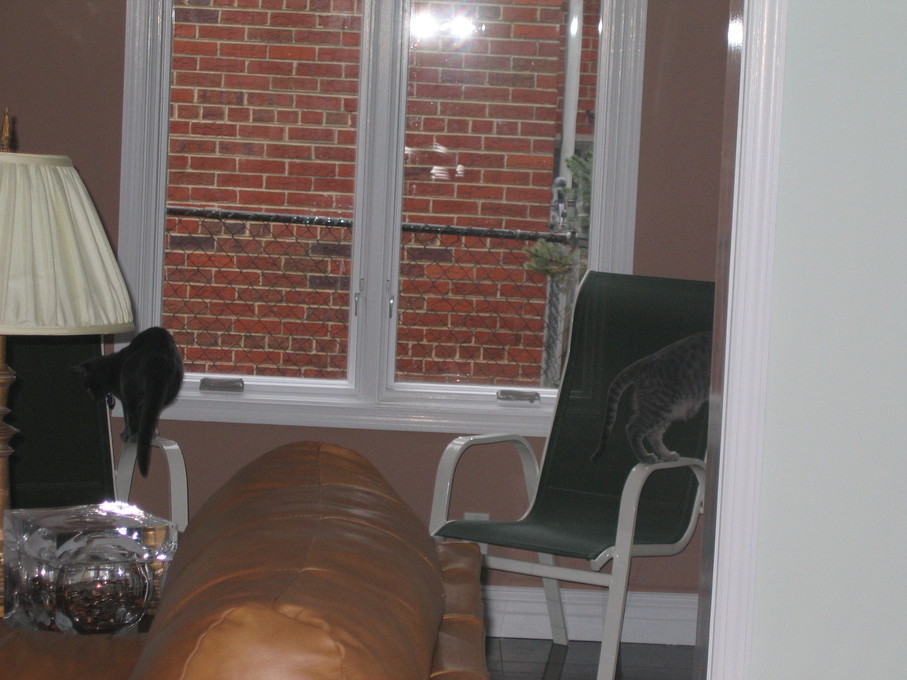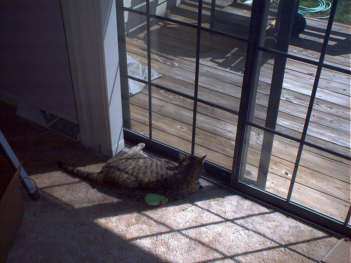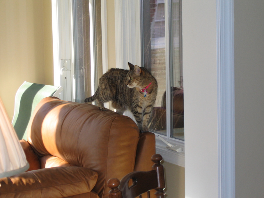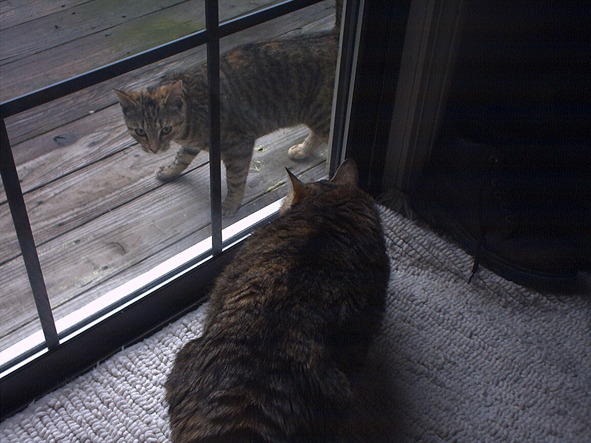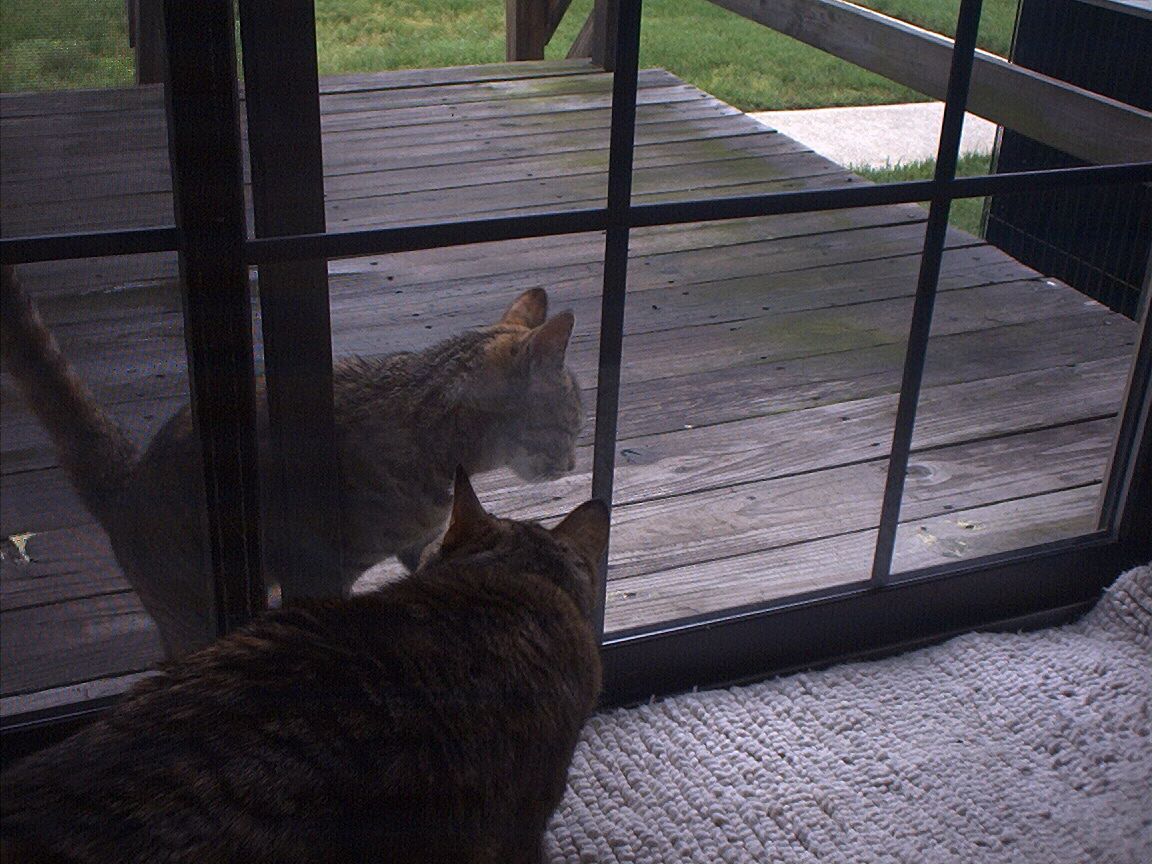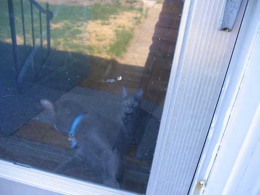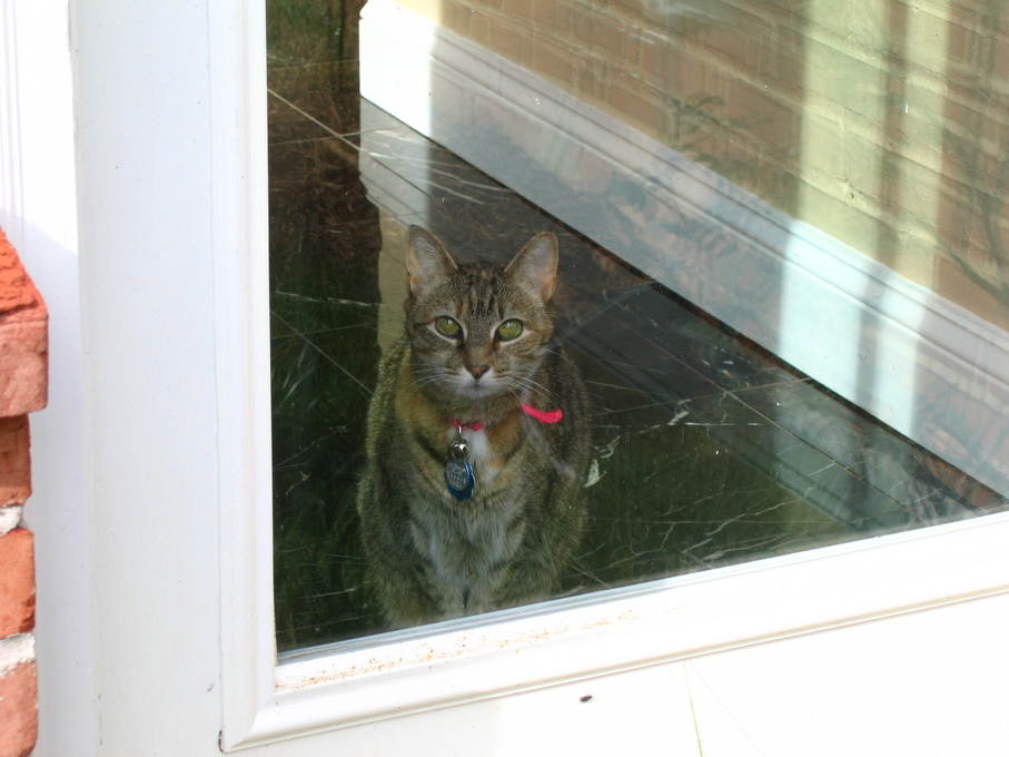 Electra oblivious to the neighbor's cat outside (should be rotated 90 degrees clockwise