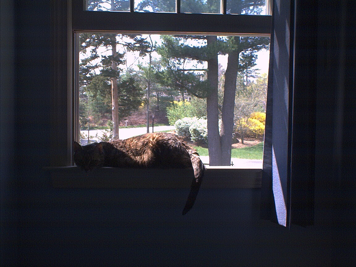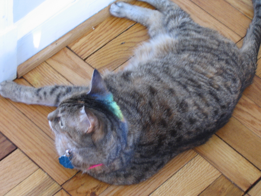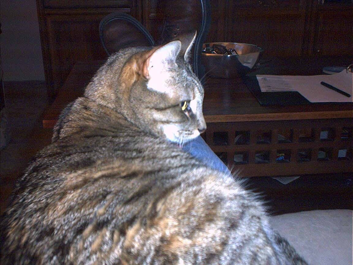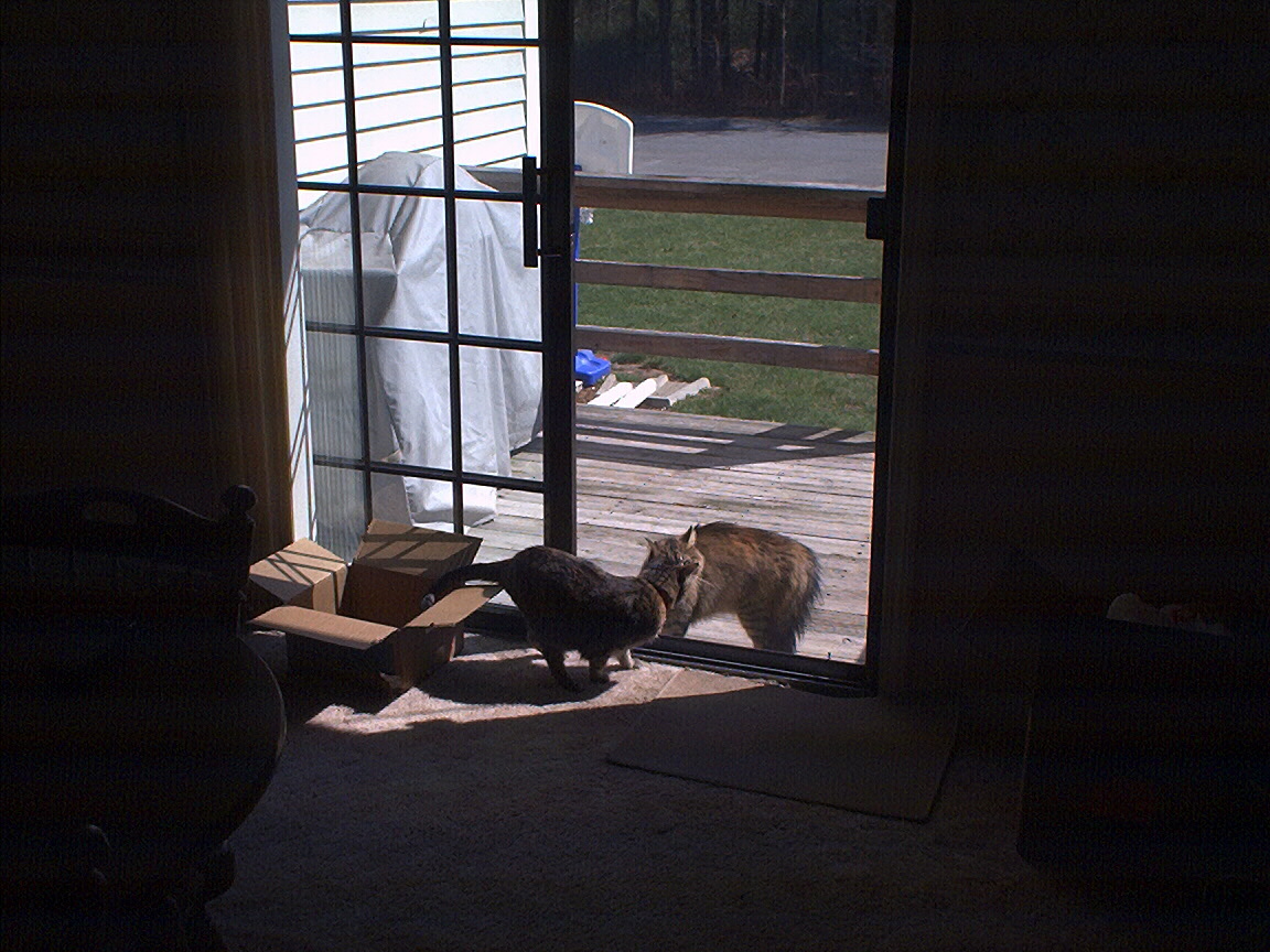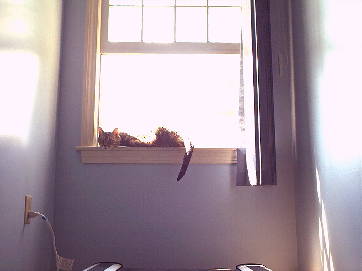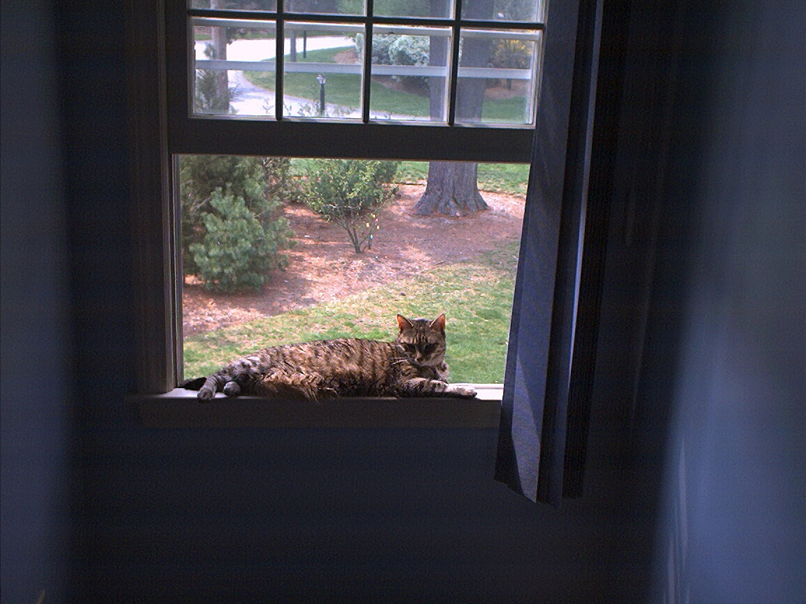 Electra oblivious to the neighbor's cat outside (should be rotated 90 degrees clockwise