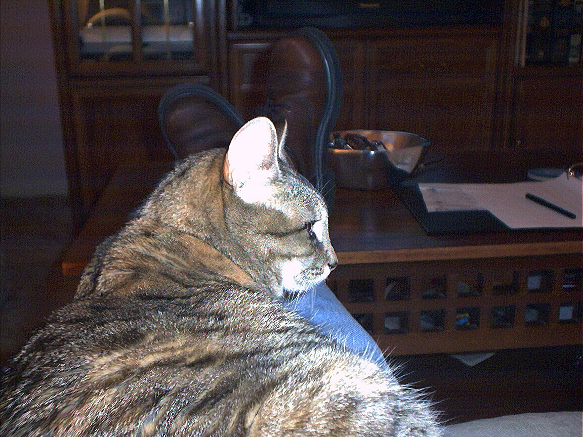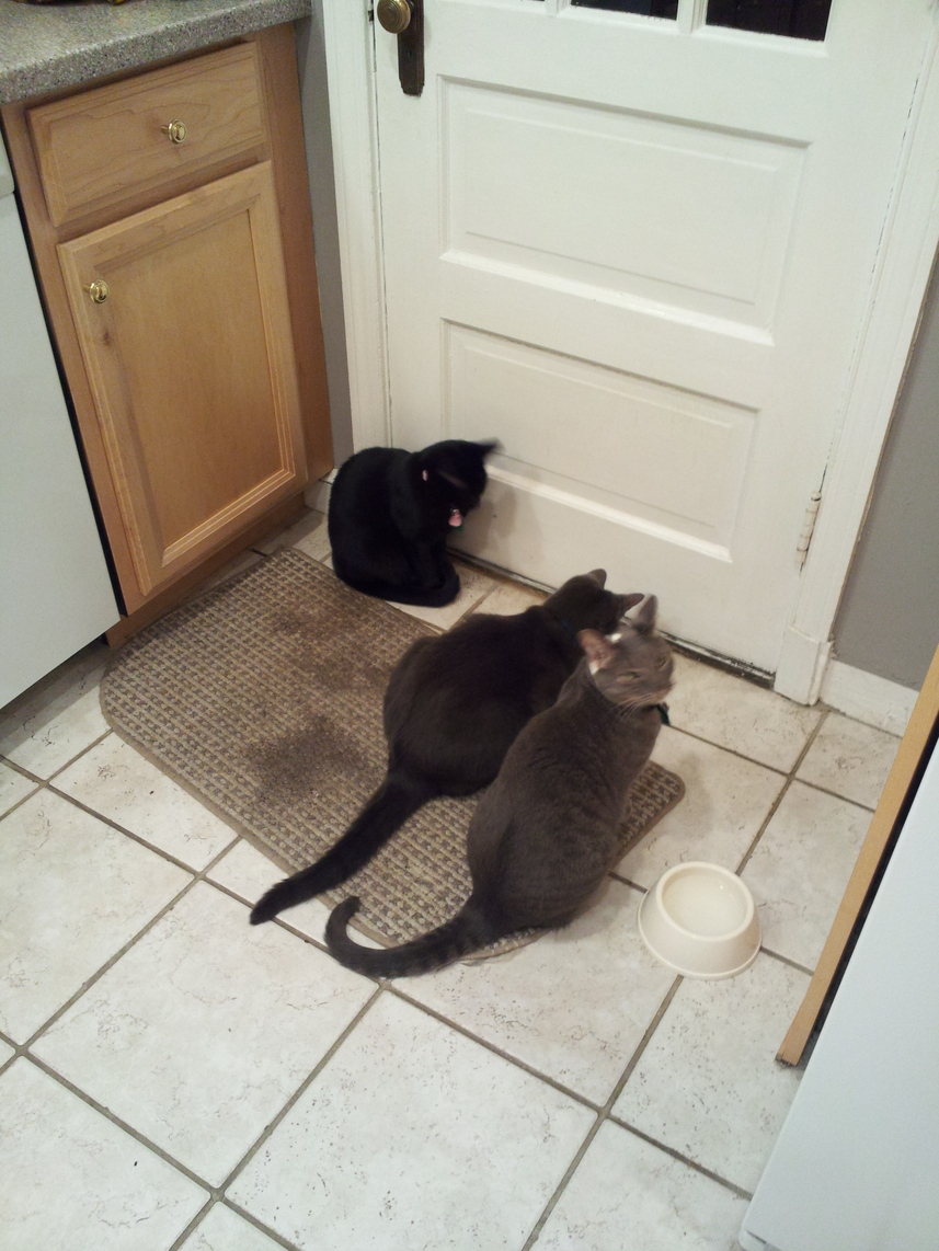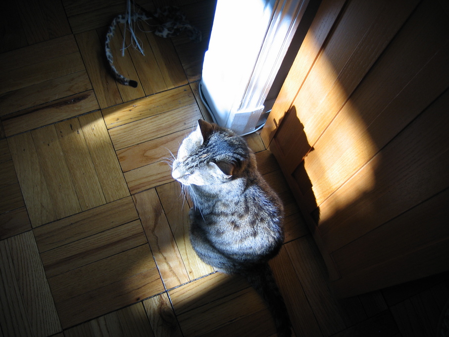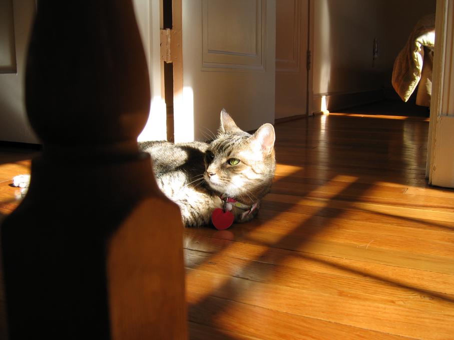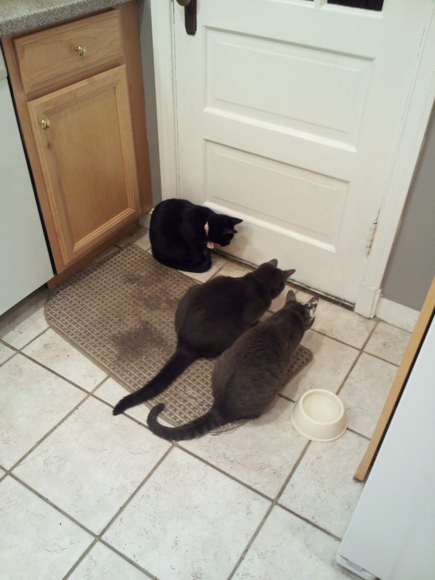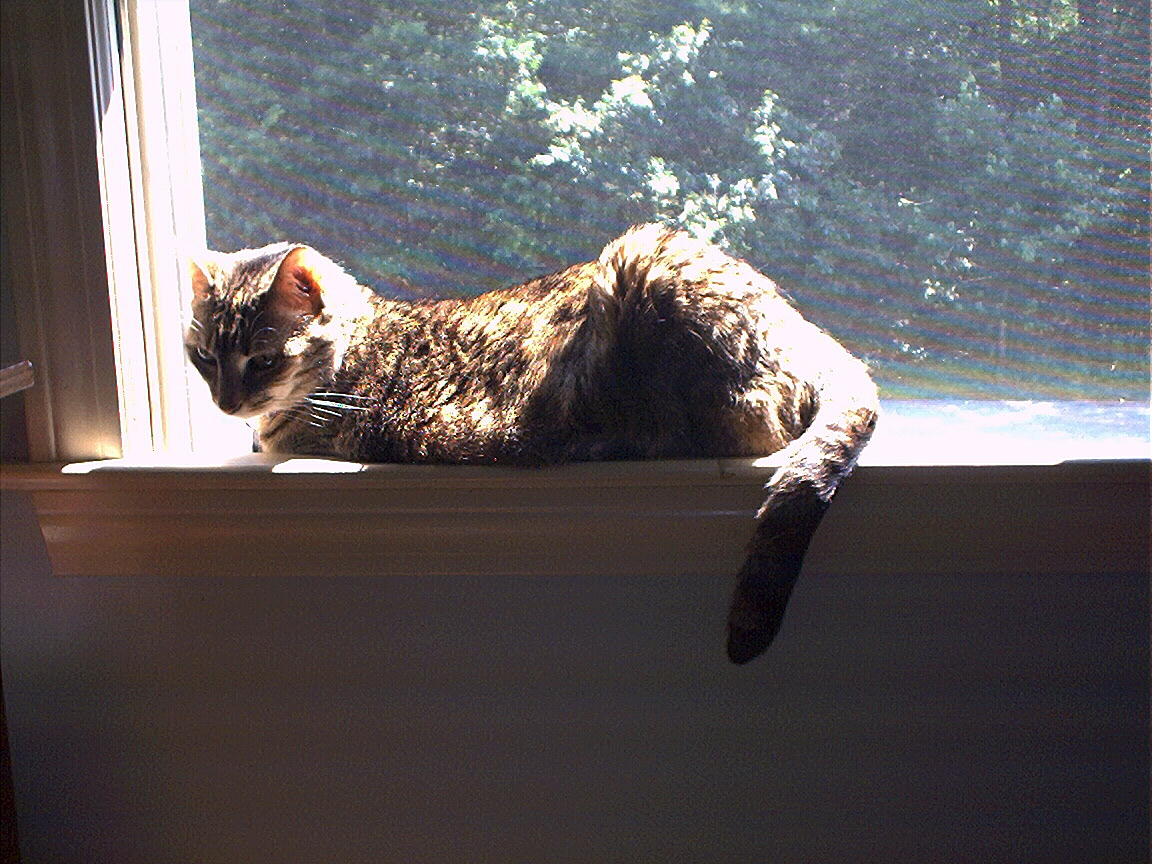 Electra oblivious to the neighbor's cat outside (should be rotated 90 degrees clockwise